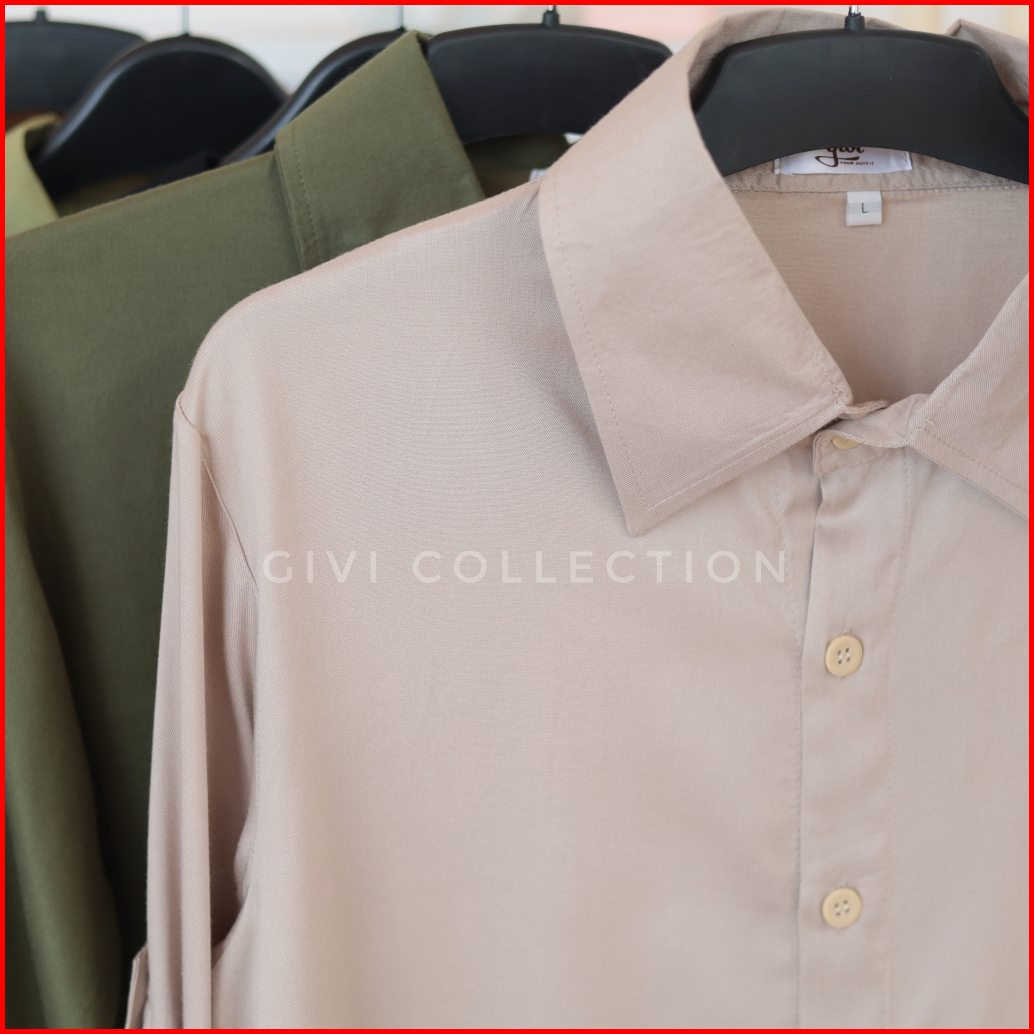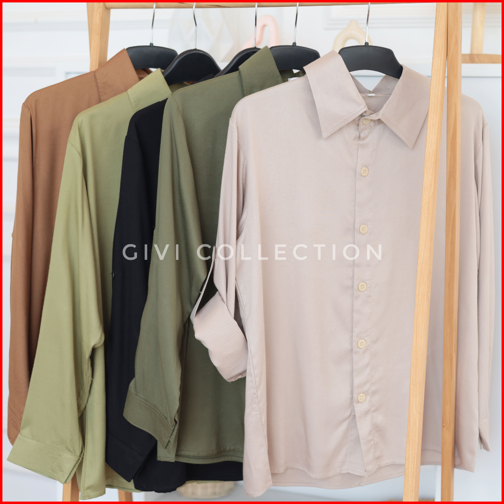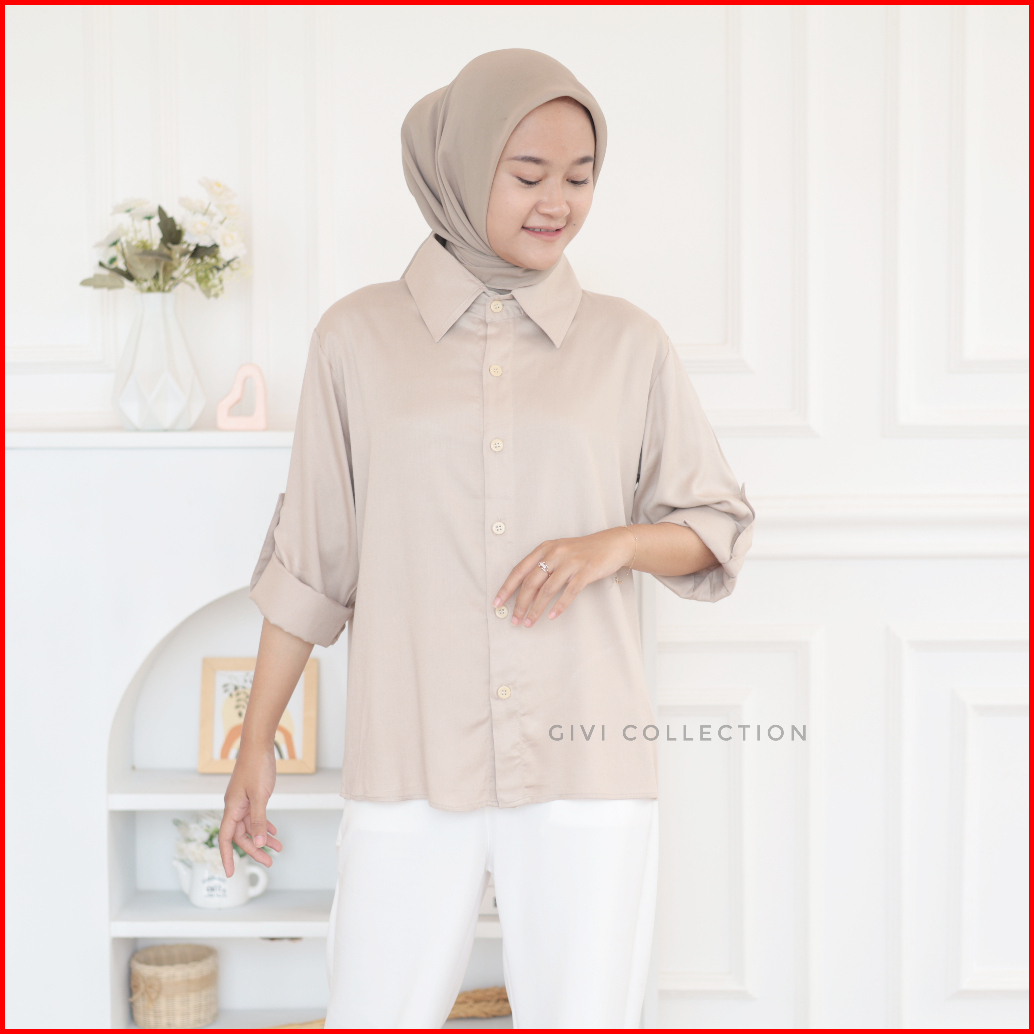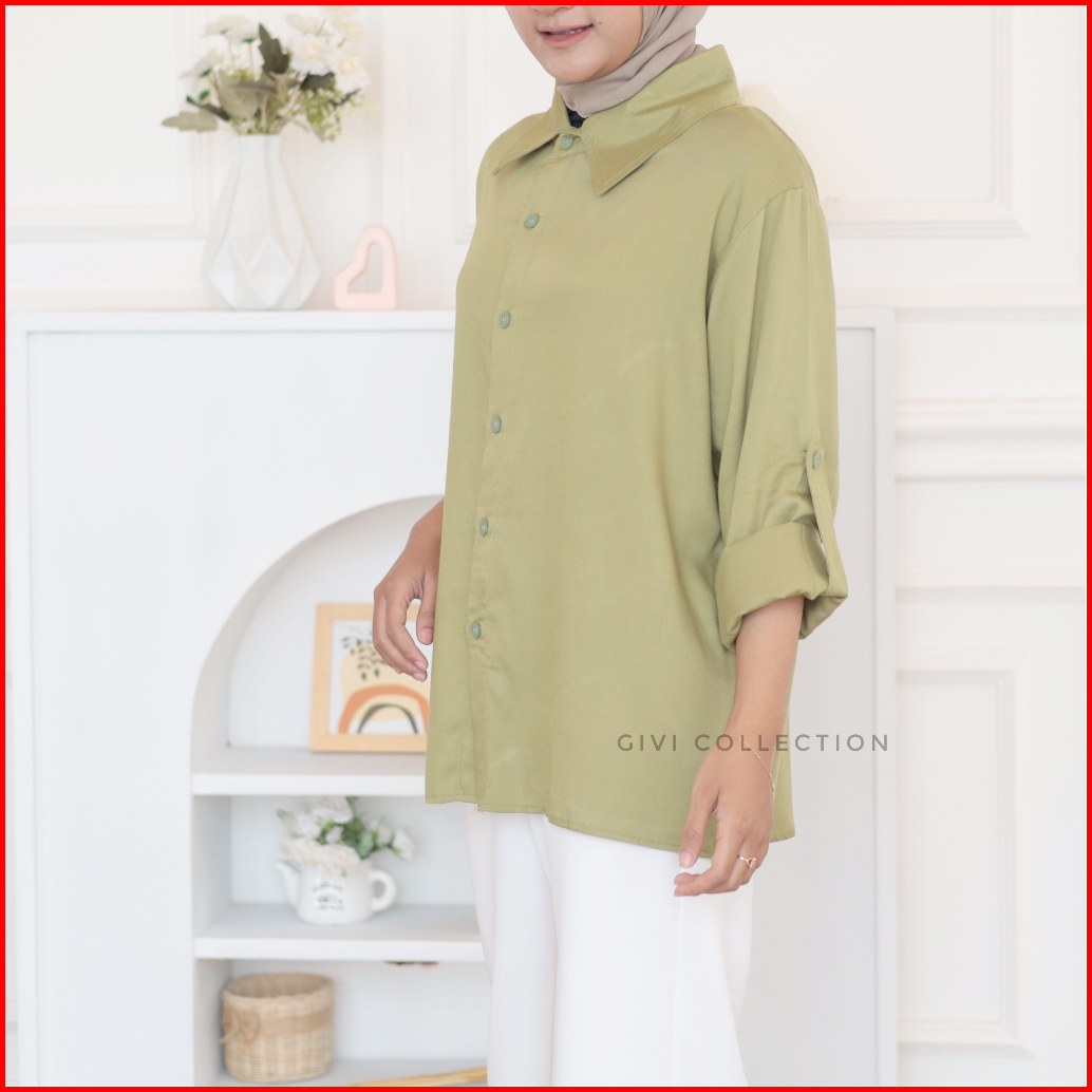 Megie Shirt Kemeja Polos Wanita Rayon Twill Tebal Kemeja Casual Tangan Skoder