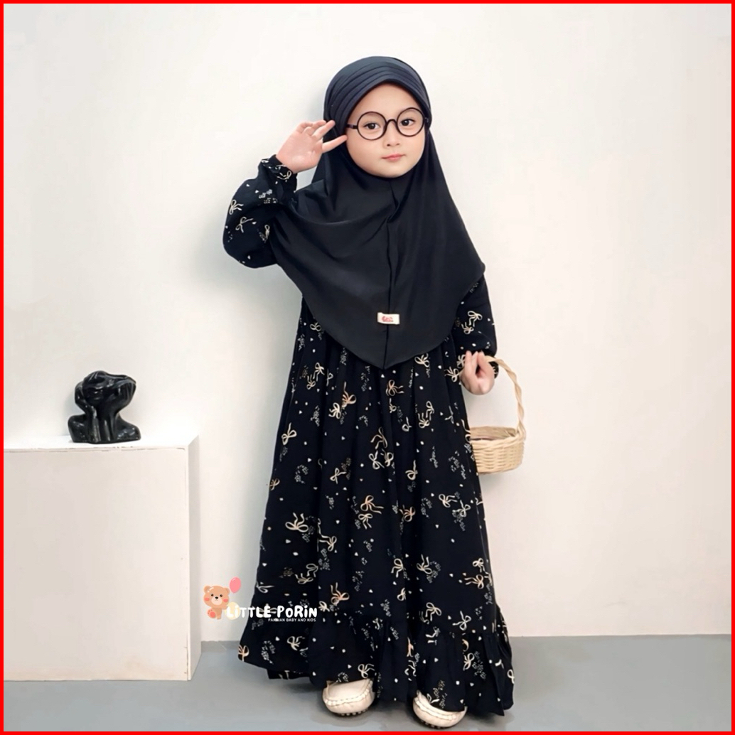 Little Porin - Gamis Rayon Anak Perempuan 1-12tahun - Baju Ngaji Anak - Gamis Motif - Abaya Anak - Baju Syari Anak