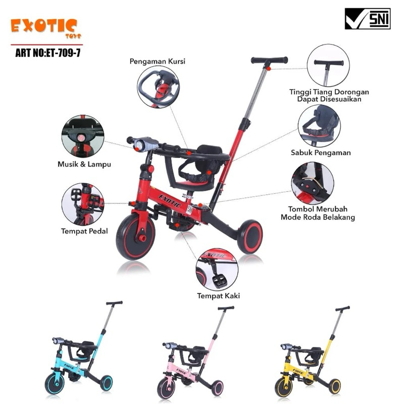 [Star] Sepeda roda tiga Anak balance bike 6 in 1 Exotic ET 709-7 T32 T20-7 lipat push bike