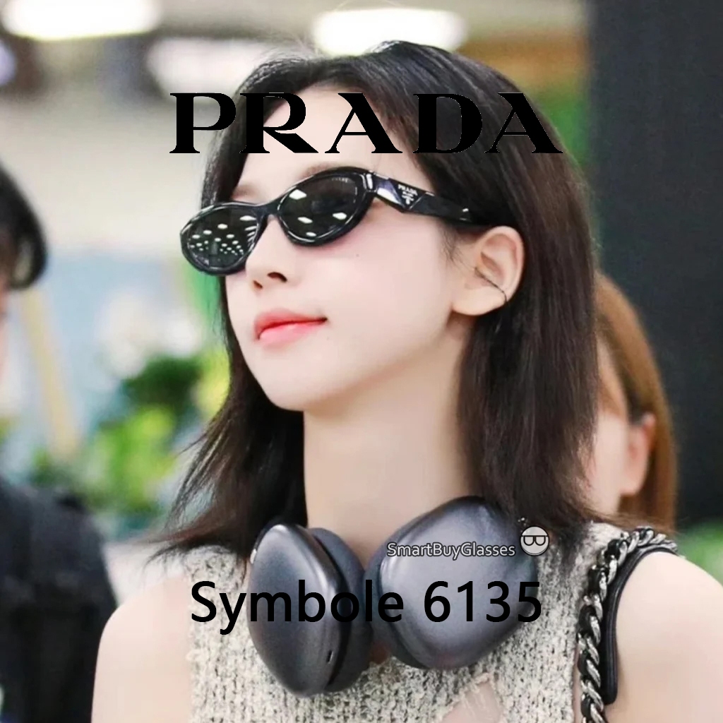 【100 PERSEN Original】Kacamata Hitam PRADA Sunglasses Symbole 6135 Polished Black Wanita Pria woman UV400