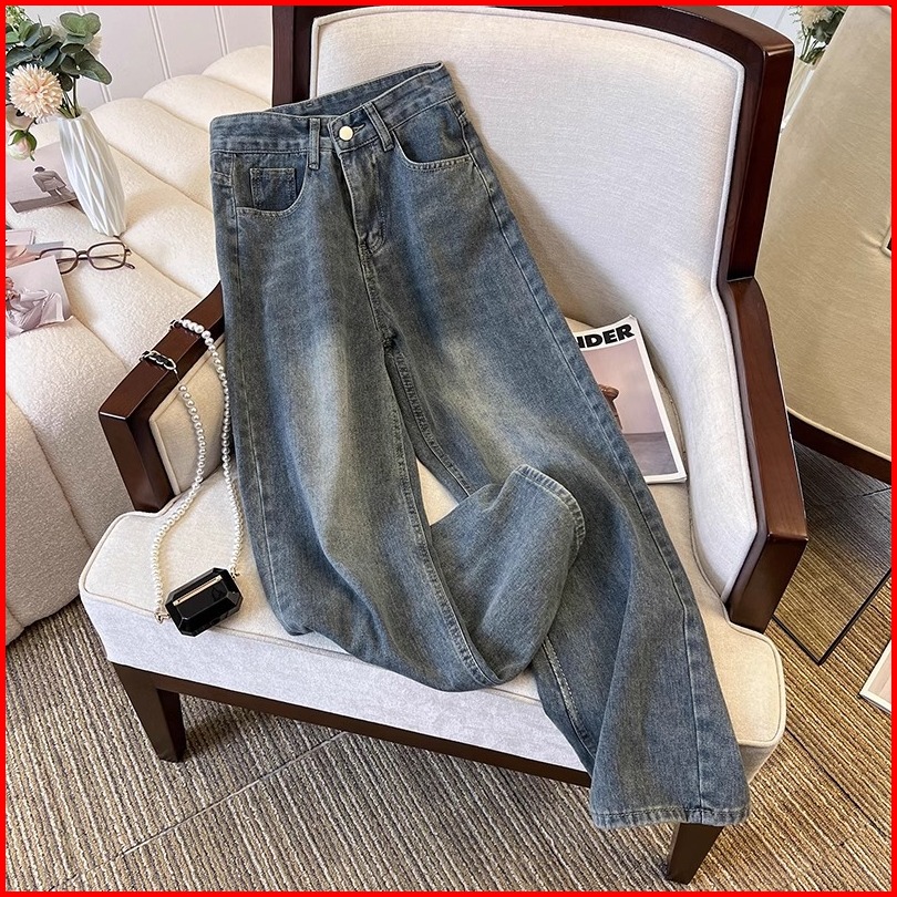 Luck Wanitabiru Retro Korea Style Highwaist Loose Celana Jeans Wanita Kekinian