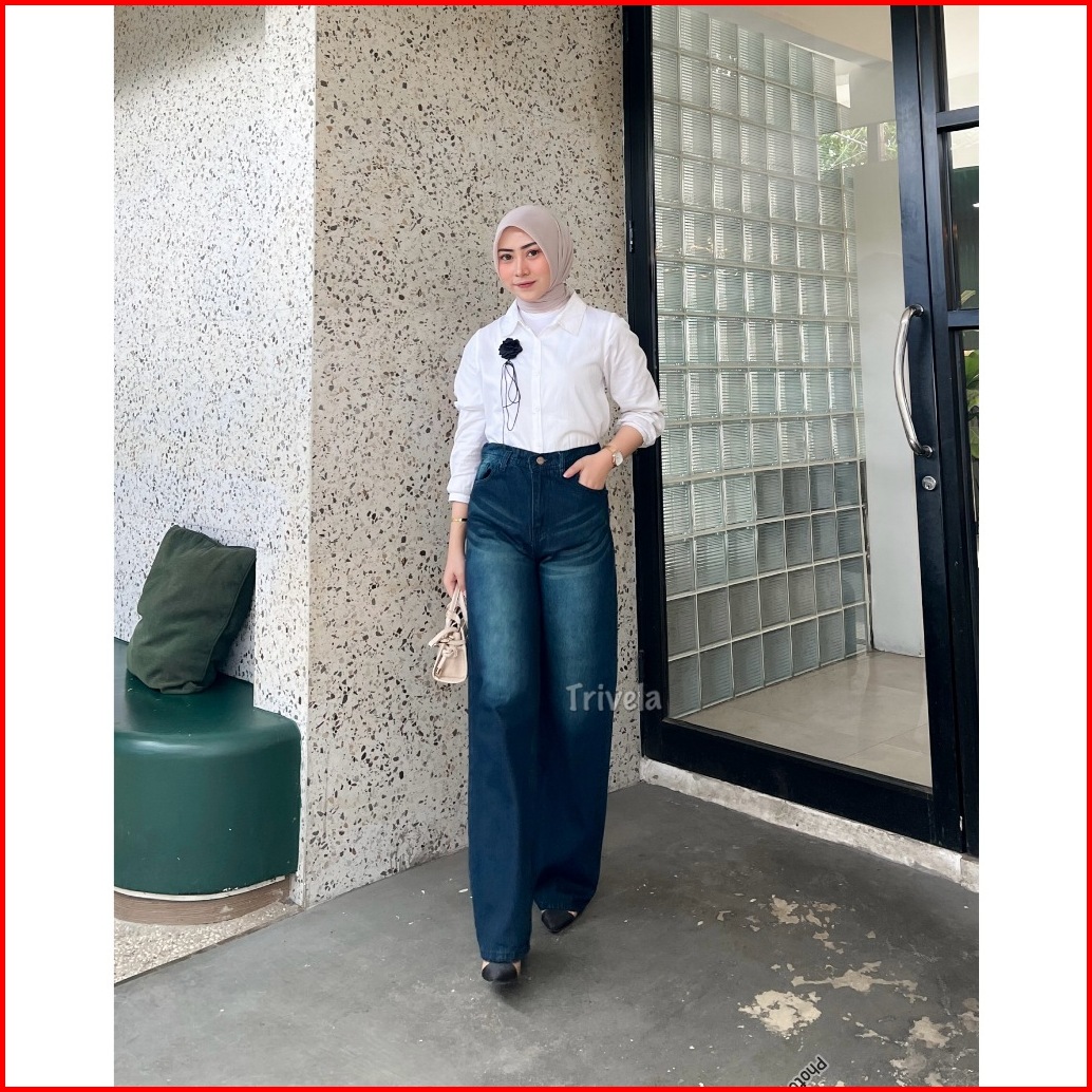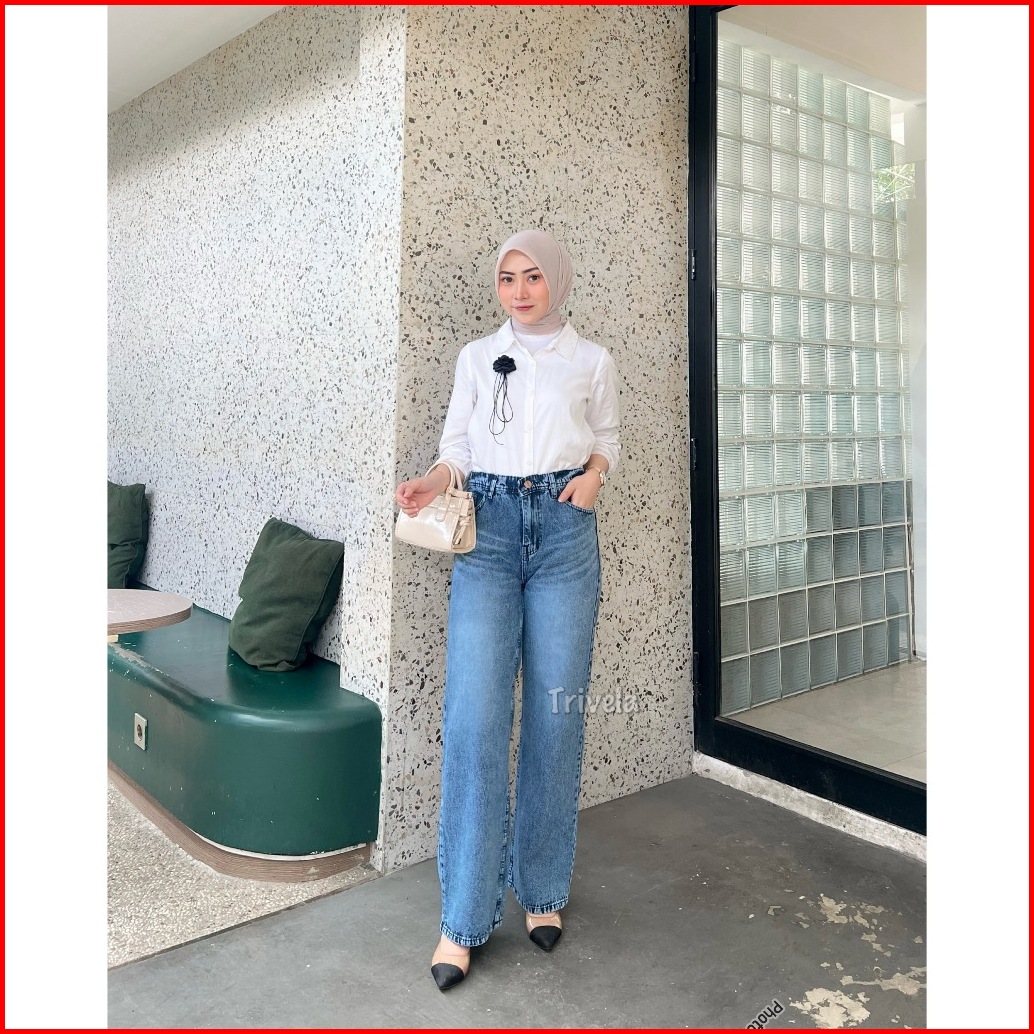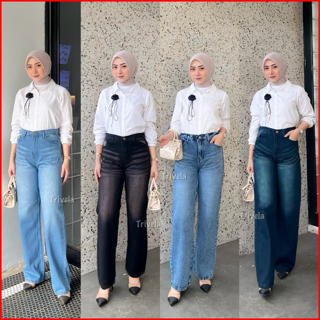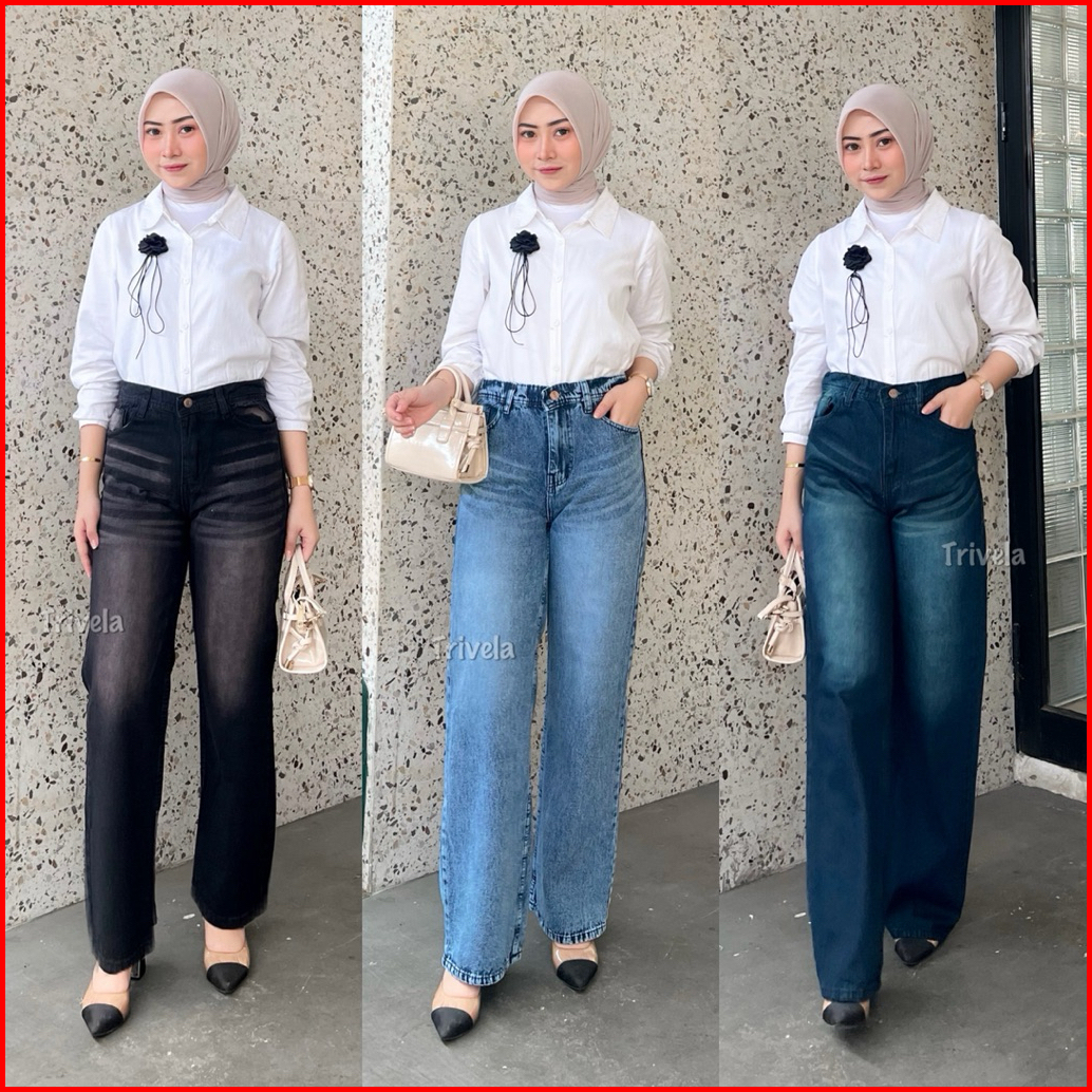 Trivela - Loose Jeans Vintage Whisker Anti Ngatung Non Stretch Retro Loose Jeans Gombrong Plainbf