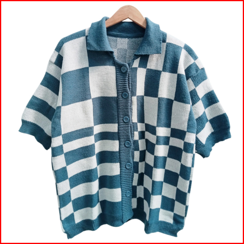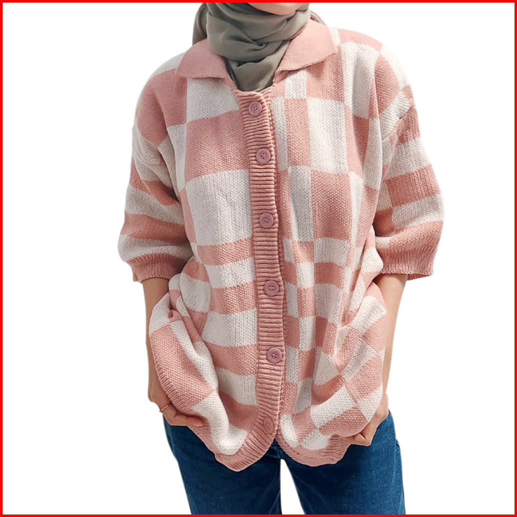 Top Atasan Rajut Knitwear Liliana Oversize Kekinian Motif Kotak Kotak Premium