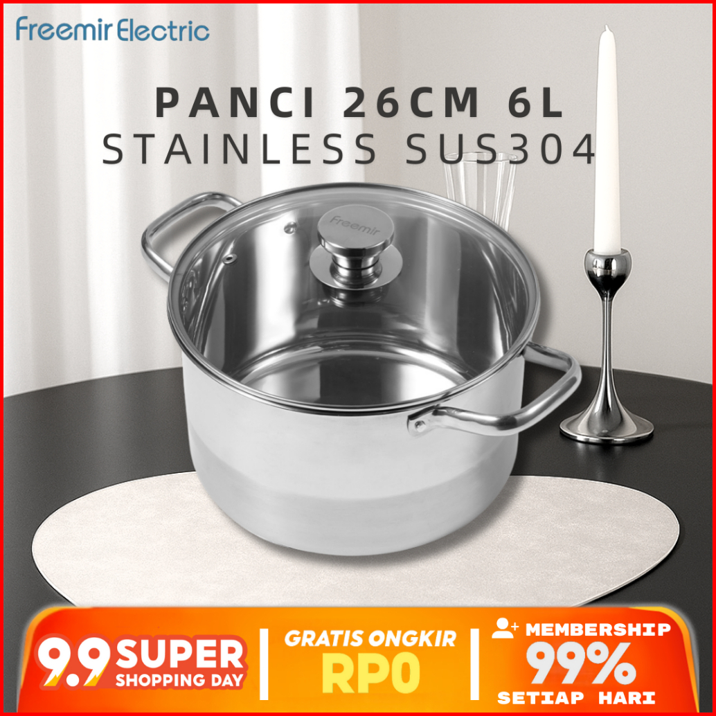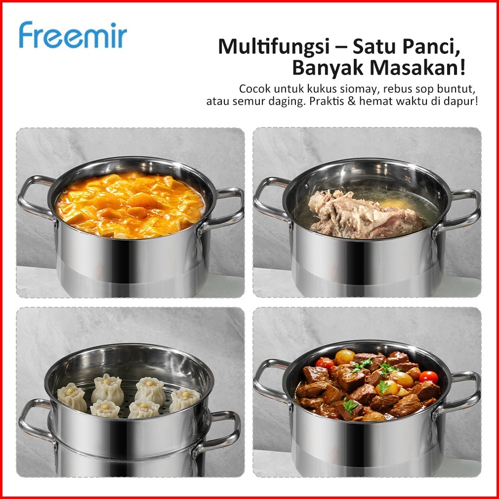 New 2025 Freemir Panci Stainless Steel 6l Sus 304 Kapasitas Besar Untuk Masakan Keluarga