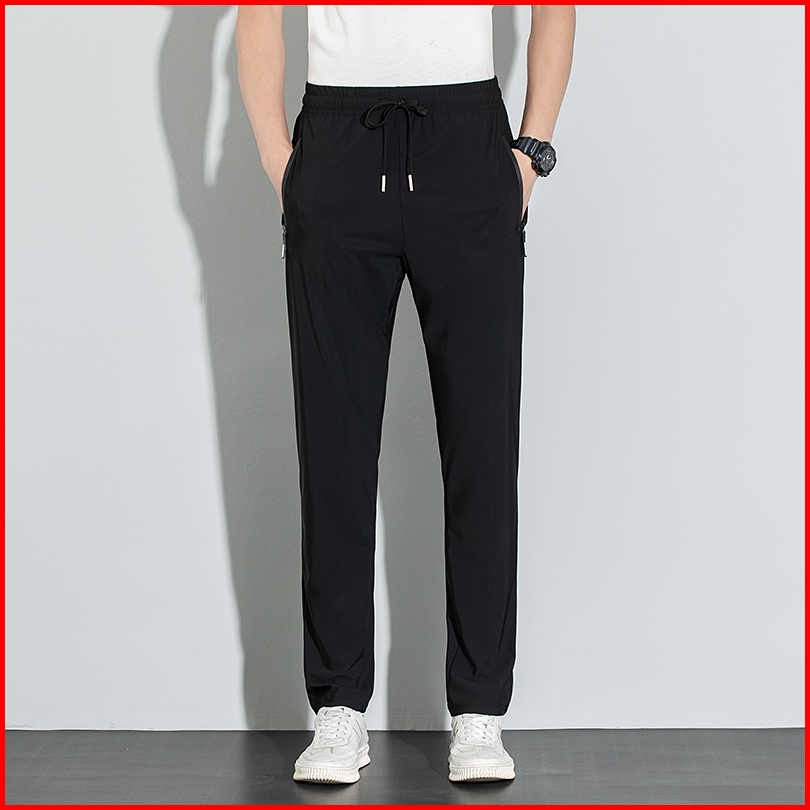 Disai - Celana Pria Saku Ritsleting Joggers Cepat Kering Panjang Ice Silk Elastisitas K9001a