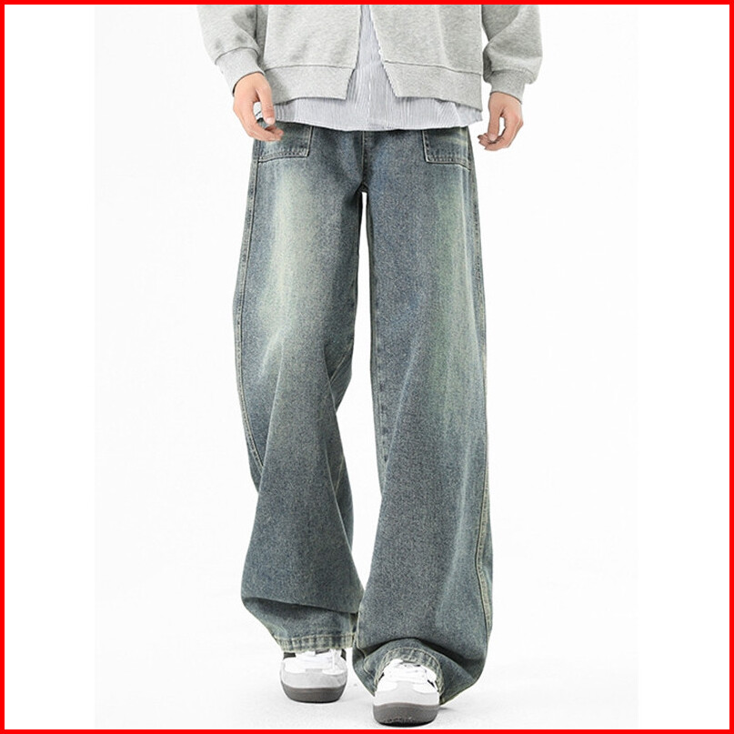 Disai - Celana Jeans Pria Celana Baggy Jeans Gombrong Oversize Loose Dewasa Cowok Denim Kulot Pria