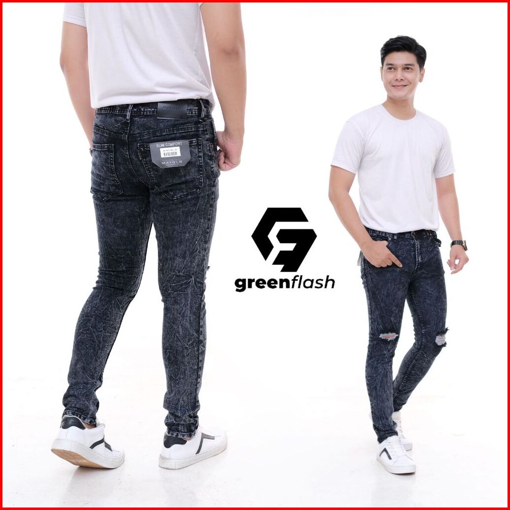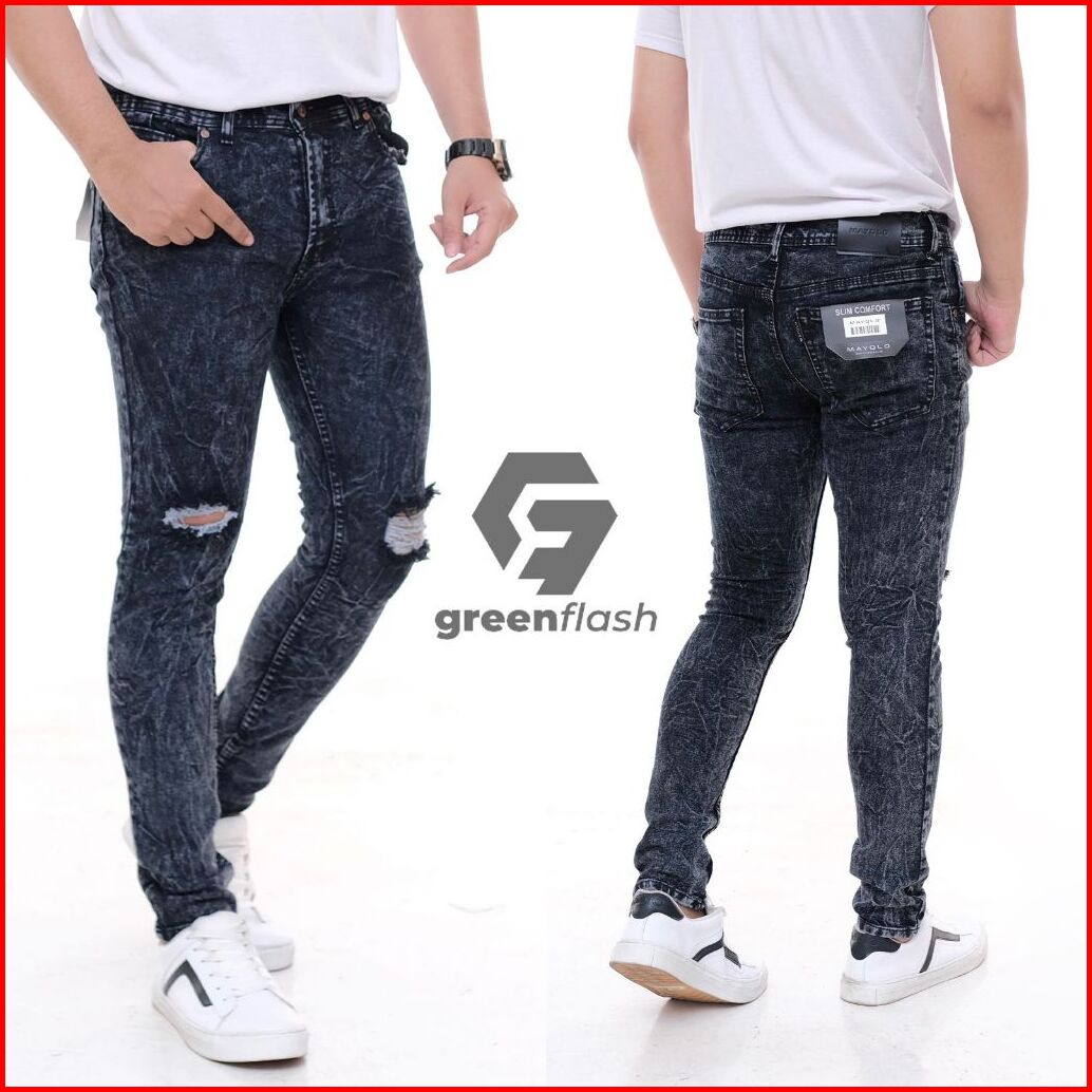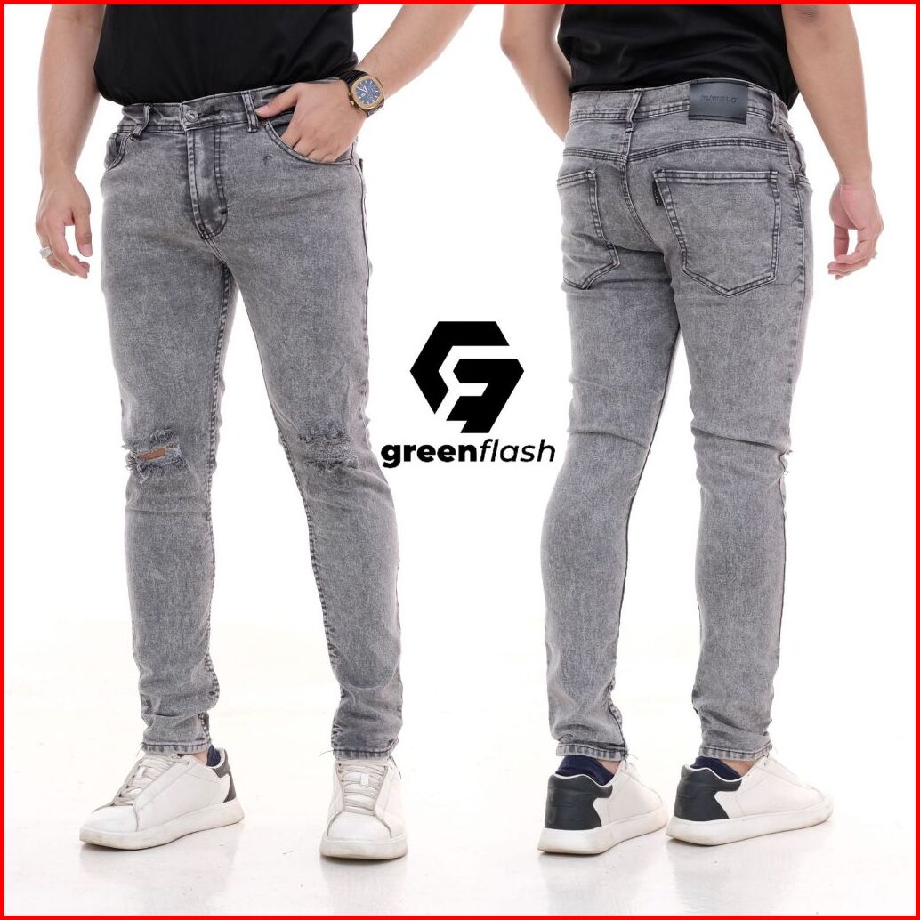Greenflash - Celana Panjang Jeans Sobek Lutut Snow Pria Premium Celana Jeans Pria Sobek