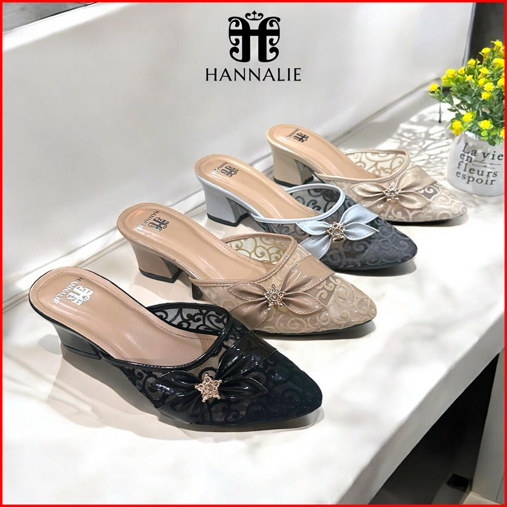 Sandal Sepatu Pesta Wanita Heels Brukat Elegant Hak Tahu 5cm Sendal Sepatu Heels Terbaru Pengantin Pernikahan Wanita Rem