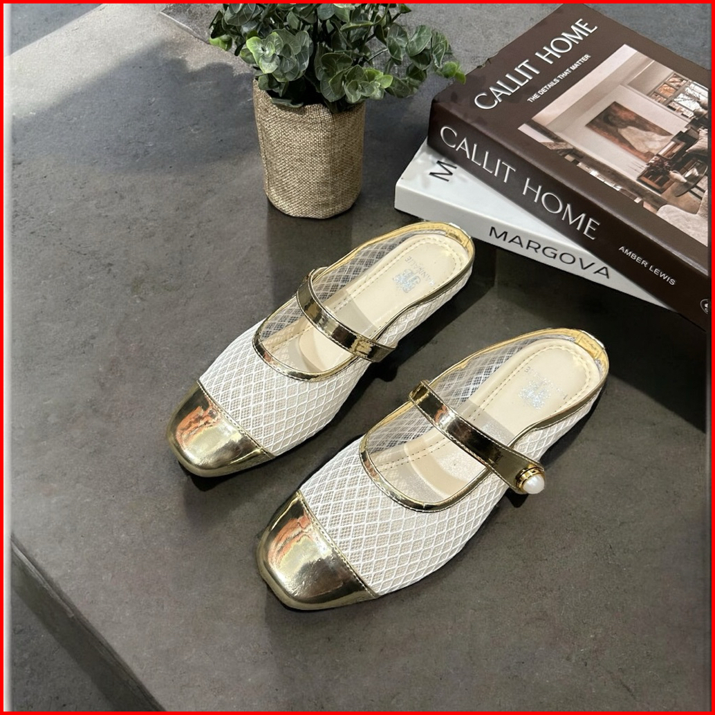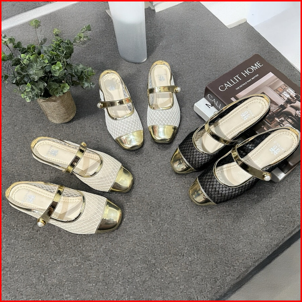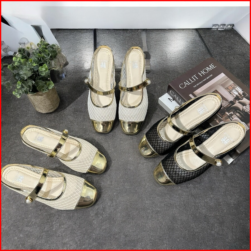 Sepatu Flat Wanita Bustong Model Terbaru Bahan Brukat Jaring
