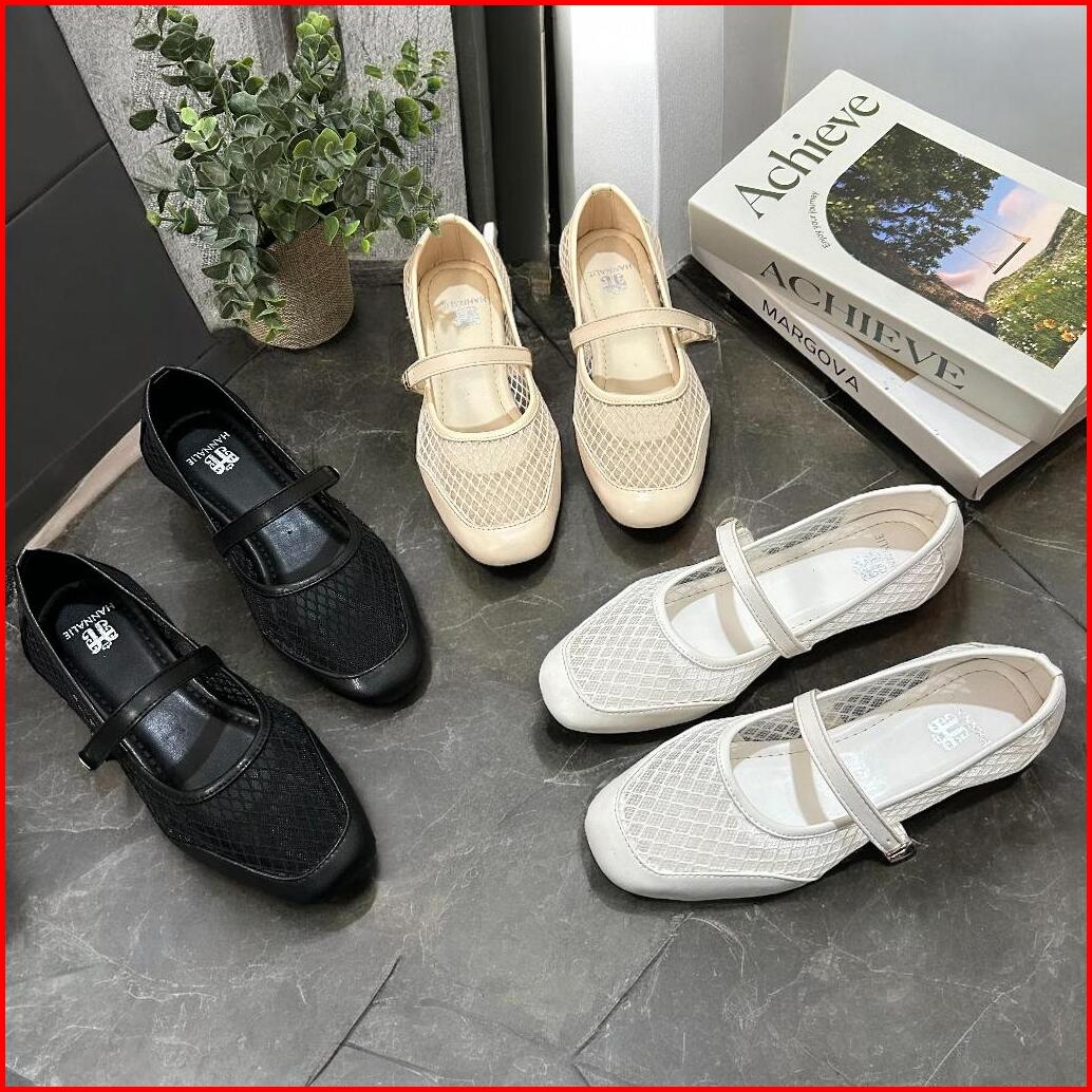 Sepatu Flat Wanita Flatshoes Wanita Terbaru 2025 Motif Renda Jaring Korea Empuk