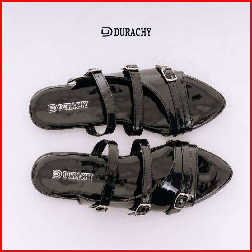 Durachy Alichia Sandal Wanita Mules Flat Slipon Gesper Lancip Daily Use