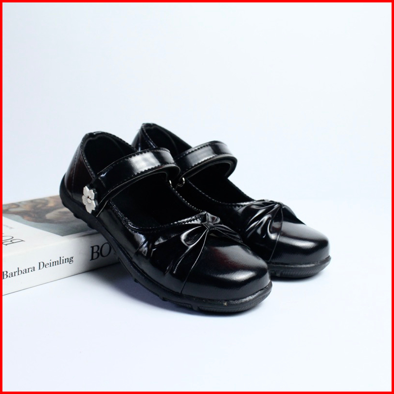 Durachy - Sepatu Anak Perempuan Model Pita Hitam Kilap Glossy Tk - Sd Am01