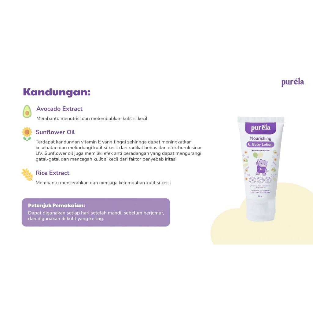 [Star] Purela Baby Lotion Anak 3 Bulan Untuk Perawatan Mencerahkan Kulit Newborn Untuk Bayi & Anak-Anak 60g