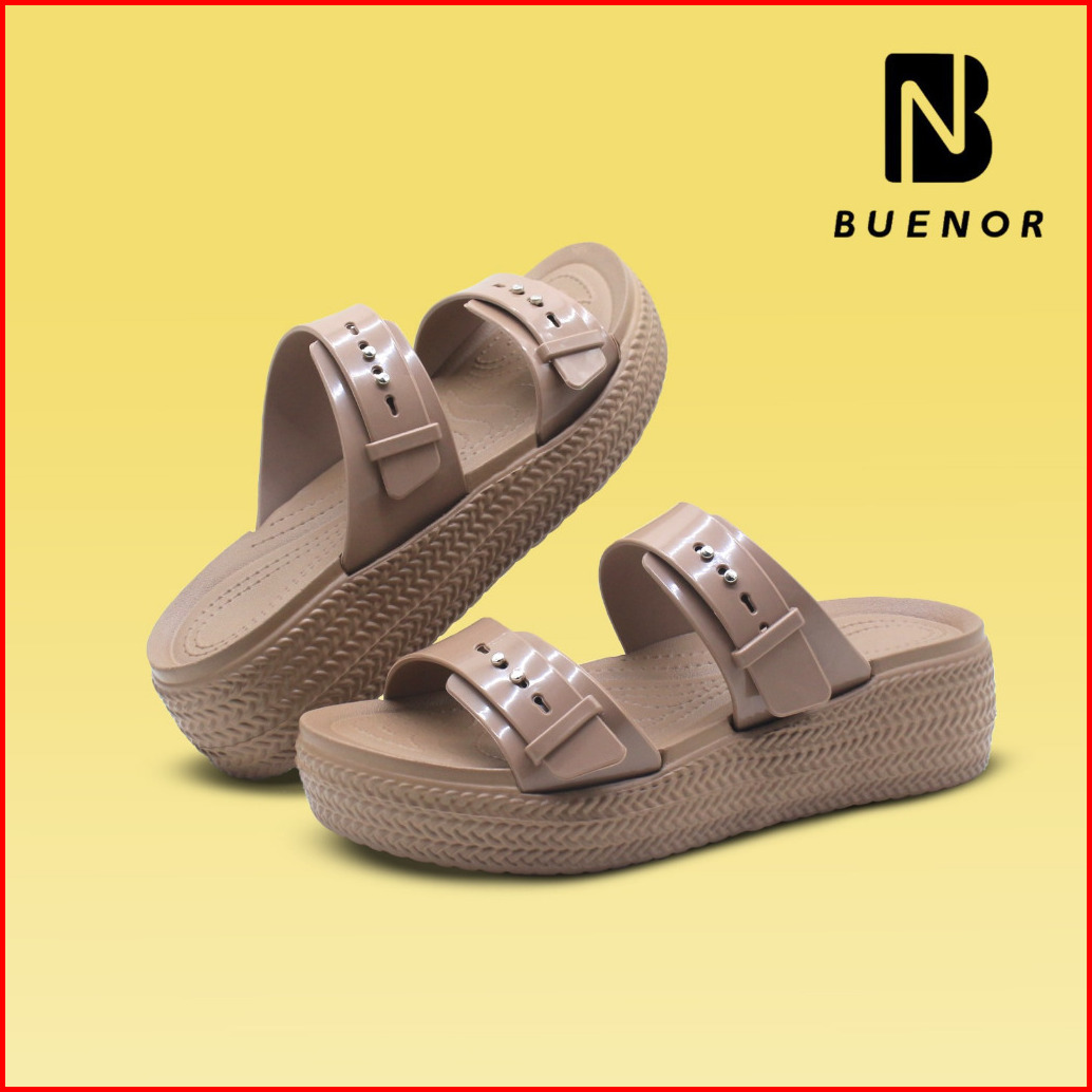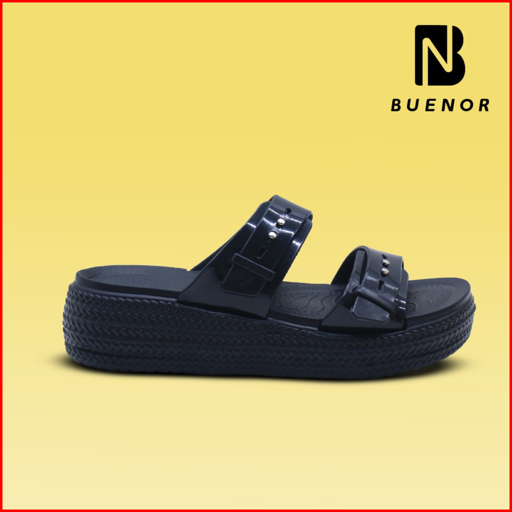 Buenor - Sandal Strap Kancing Wedges Kekinian