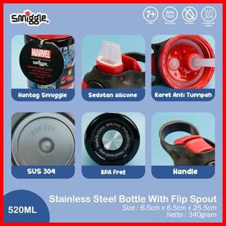 Smiggle Stainless Steel Flip Drink Bottle 520ml 21112