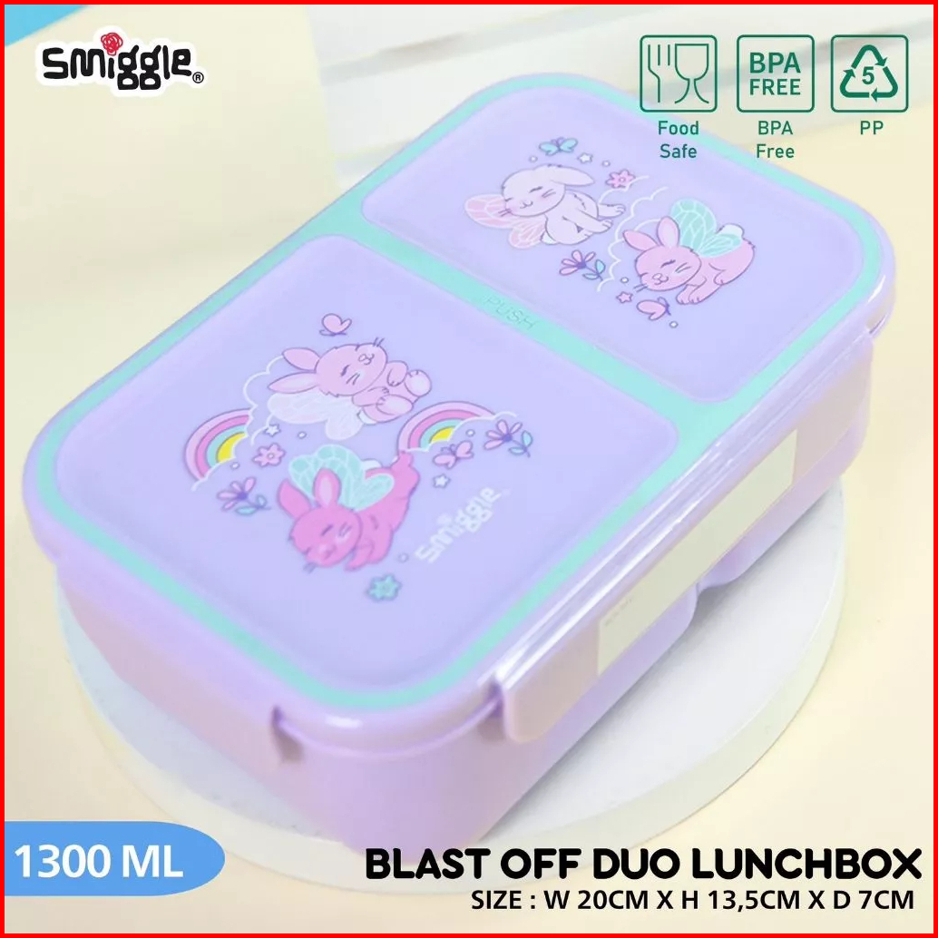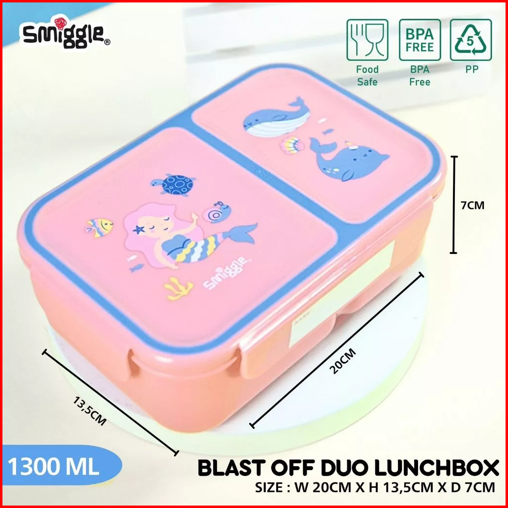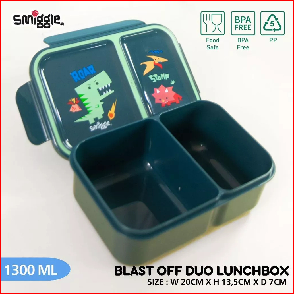 Smiggle Boost Duo Lunchbox 1300ml Kotak Makan 2 Sekat Junior Bento 11110