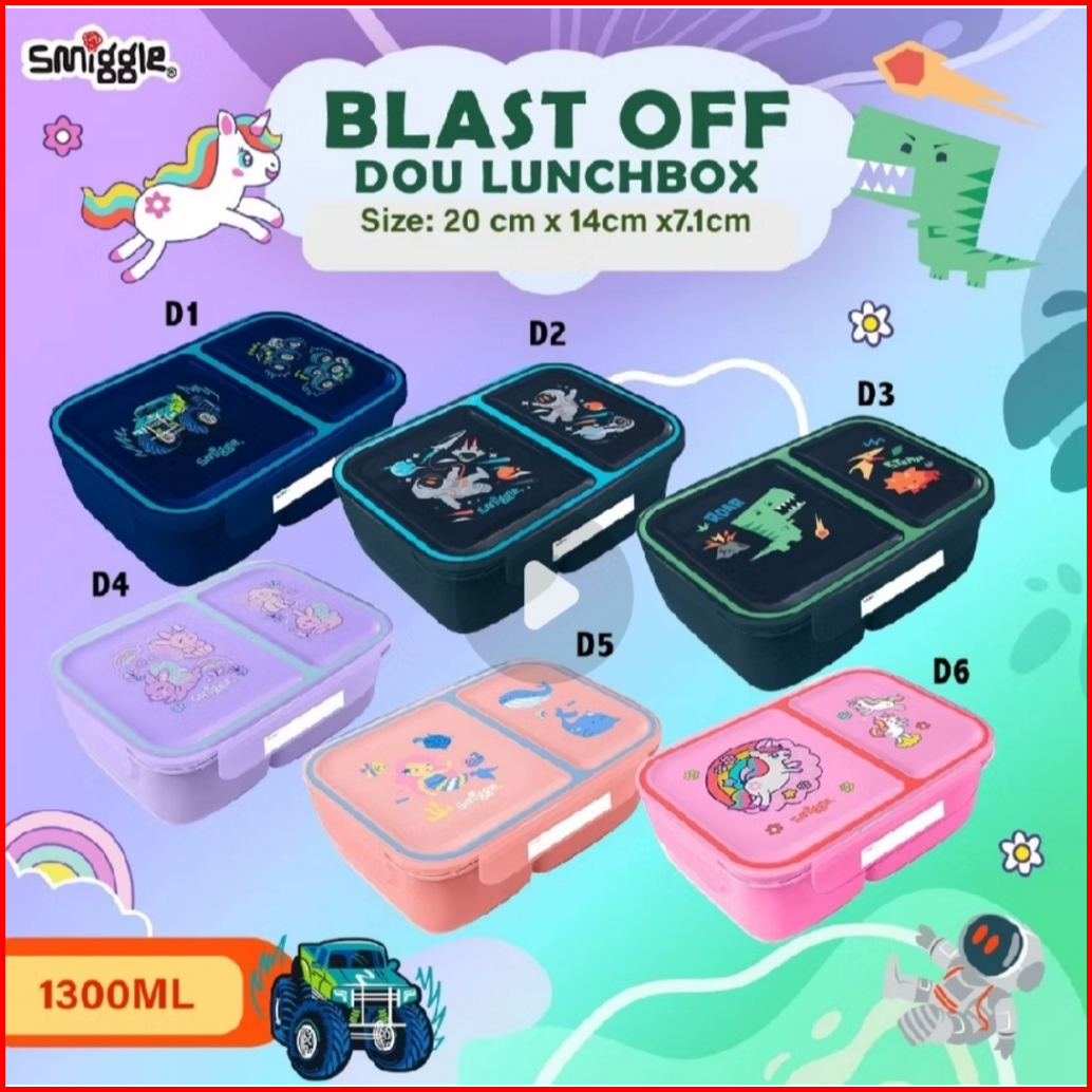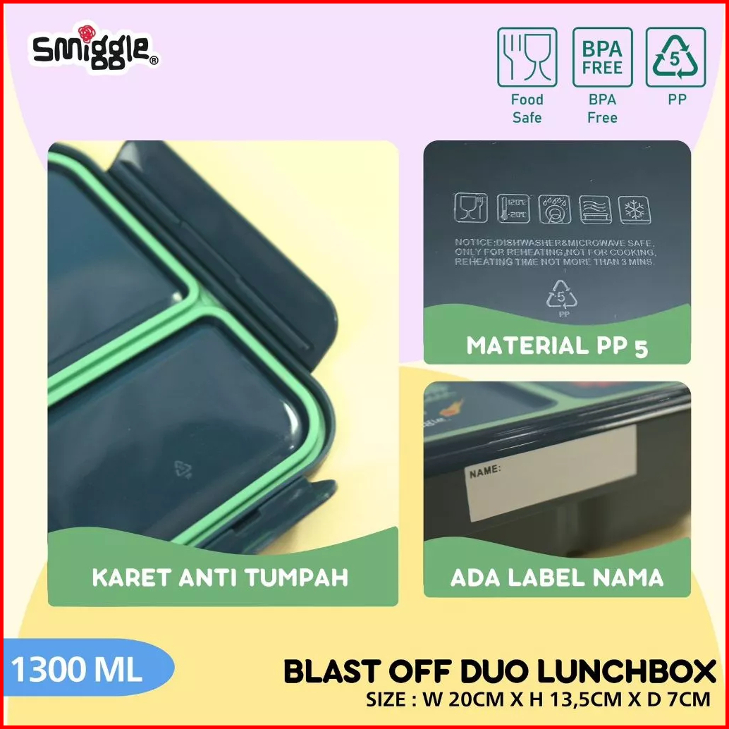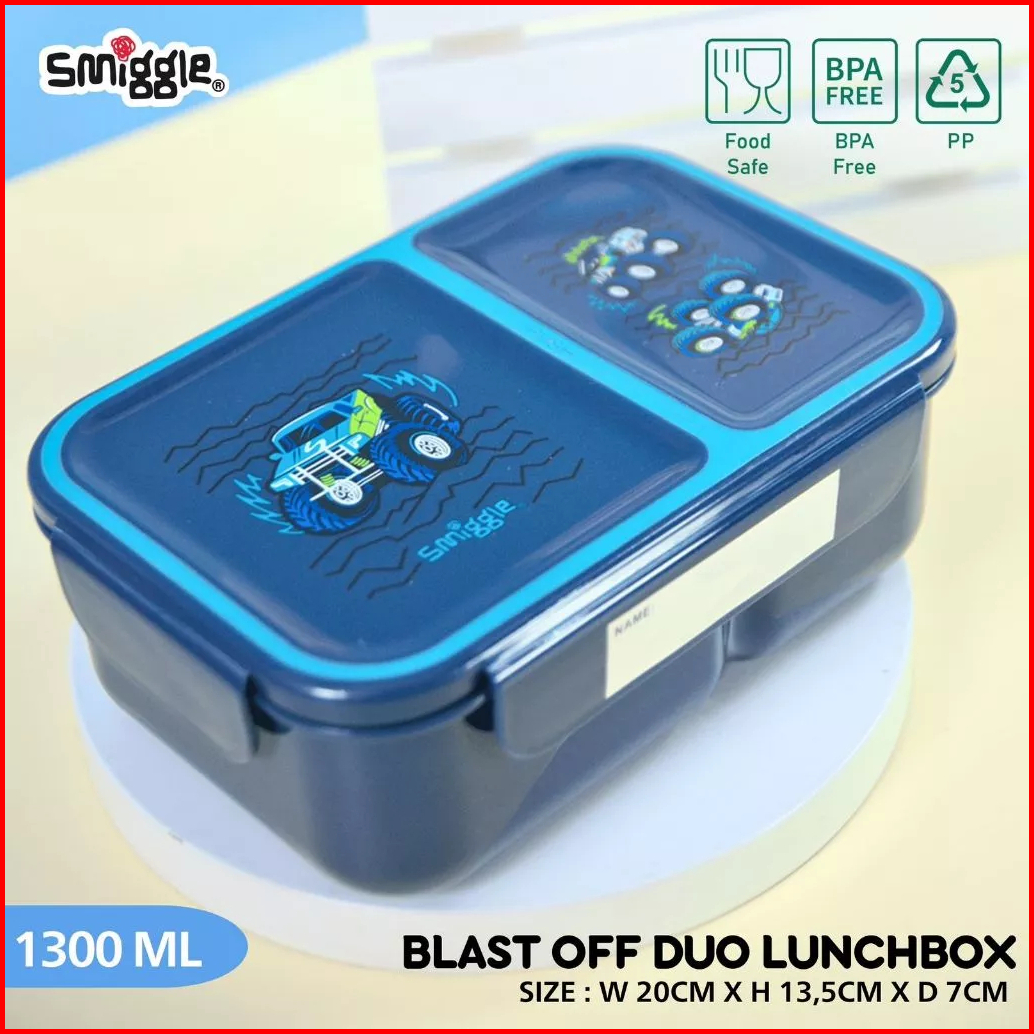 Smiggle Boost Duo Lunchbox 1300ml Kotak Makan 2 Sekat Junior Bento 11110