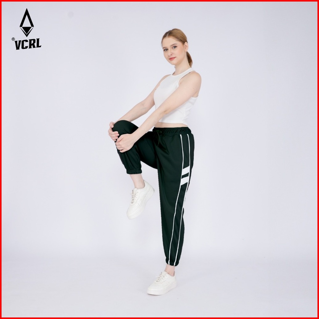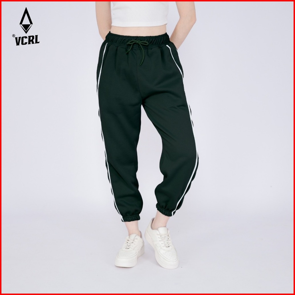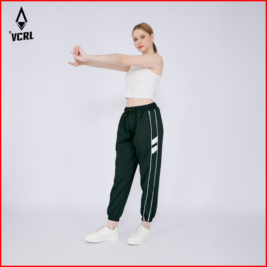 Vcrl Celana Jogger Sweatpants List Wanita Bahan Fleece Tebal Premium Adem Nyaman Lembut Stylish