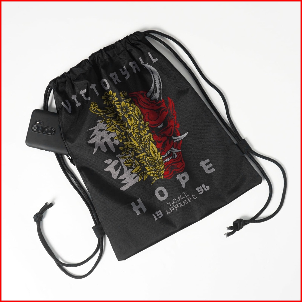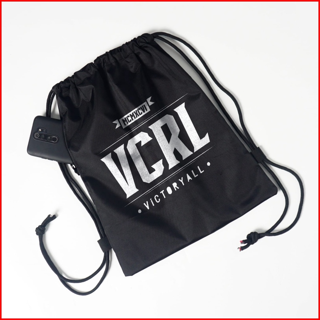 Vcrl - String Bag Tas Serut Pria Wanita Drawstring Bag Olah Raga Sekolah Warna Hitam Metal Bahan Canvas Premium