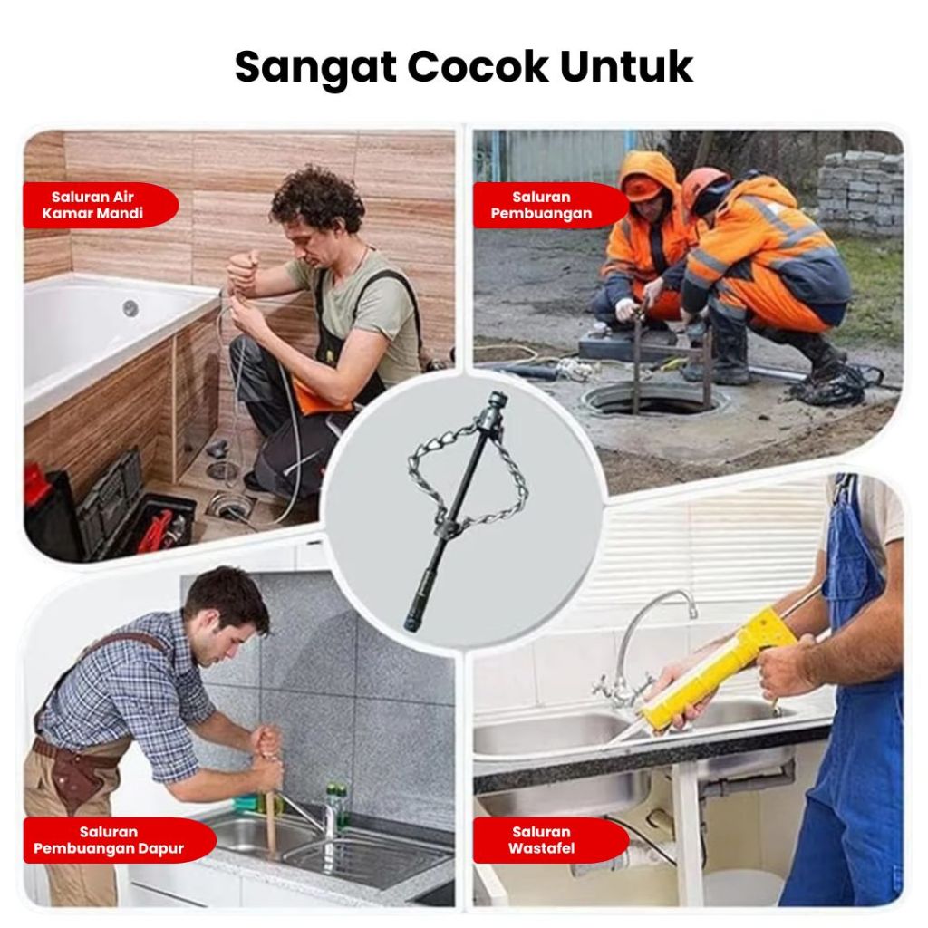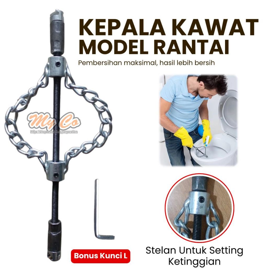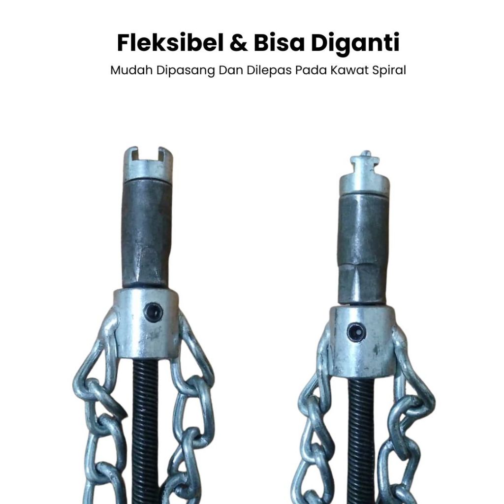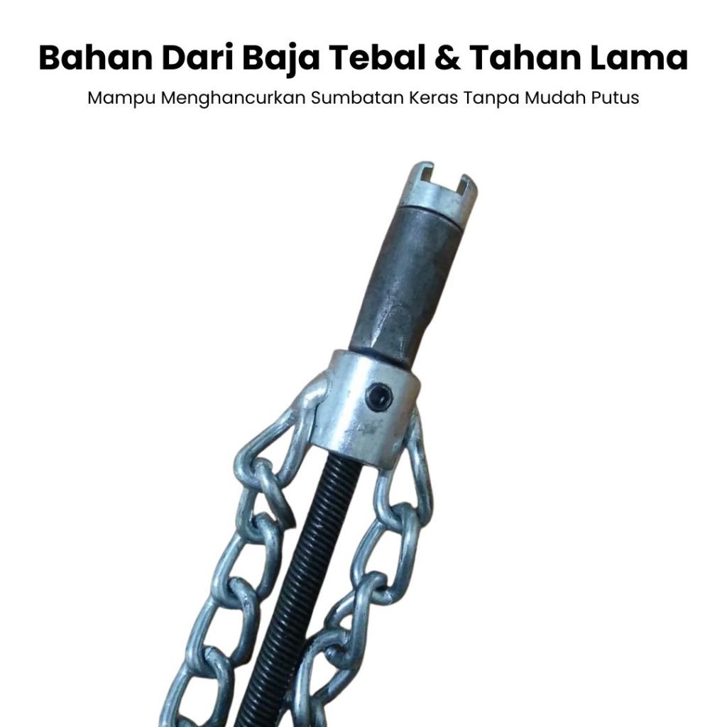 Kepala Bor Kawat Baja Pembersih Pipa Rantai Putar Anti Mampet Alat Perontok Kotoran Saluran Air WC Dapur Peralon