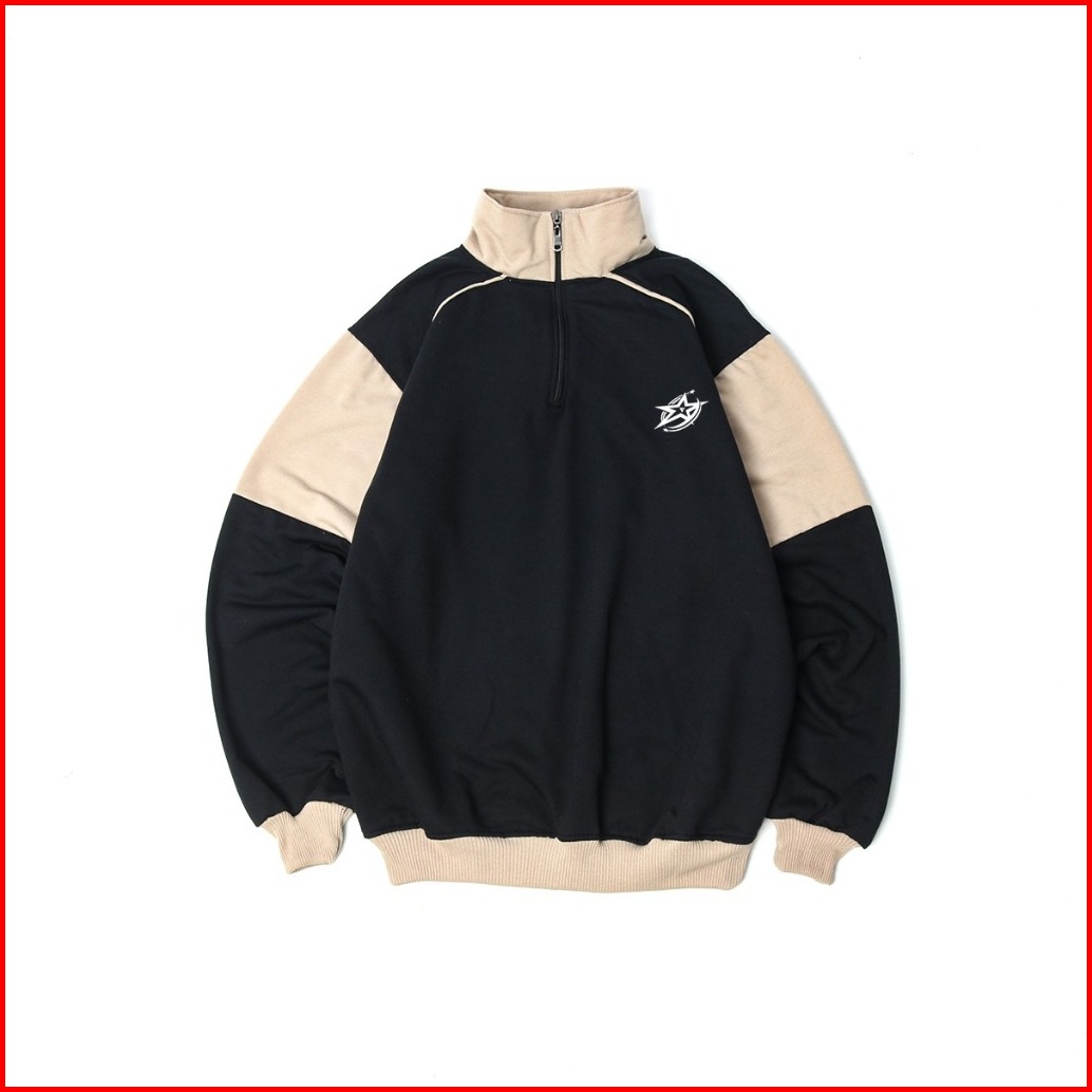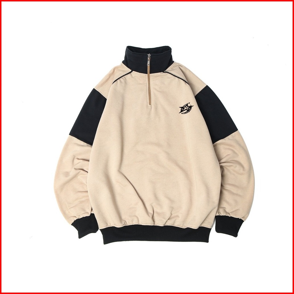Platinum World Sweatshirt Crewneck Half Zipp Rugby Bt Hitam Beige Polos Couple Pria - Wanita