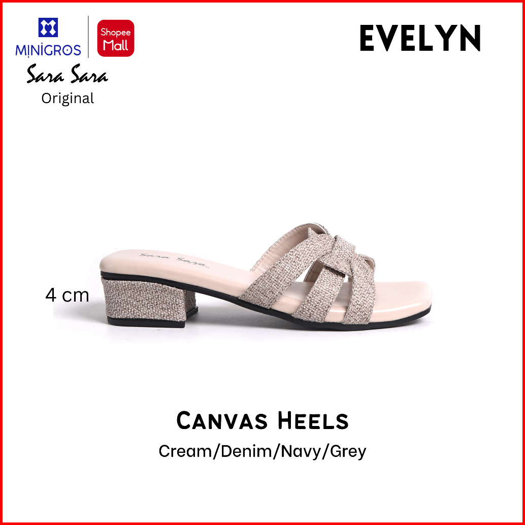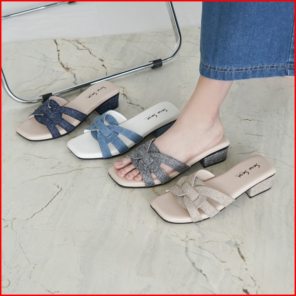 Sara Sara Evelyn Sandal Heels Wanita Bahan Canvas Denim
