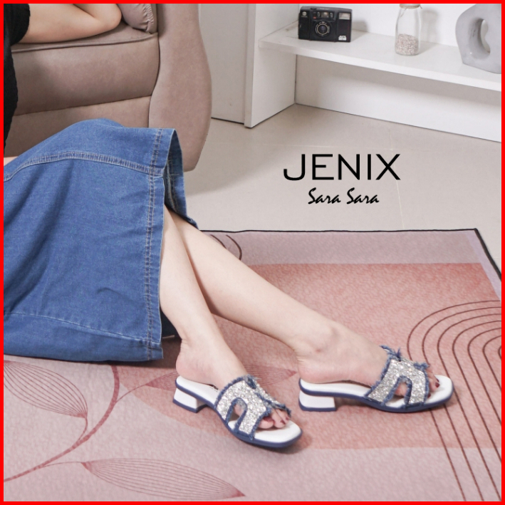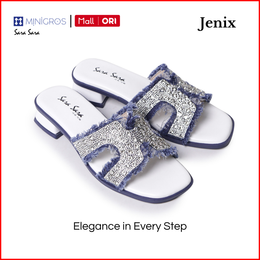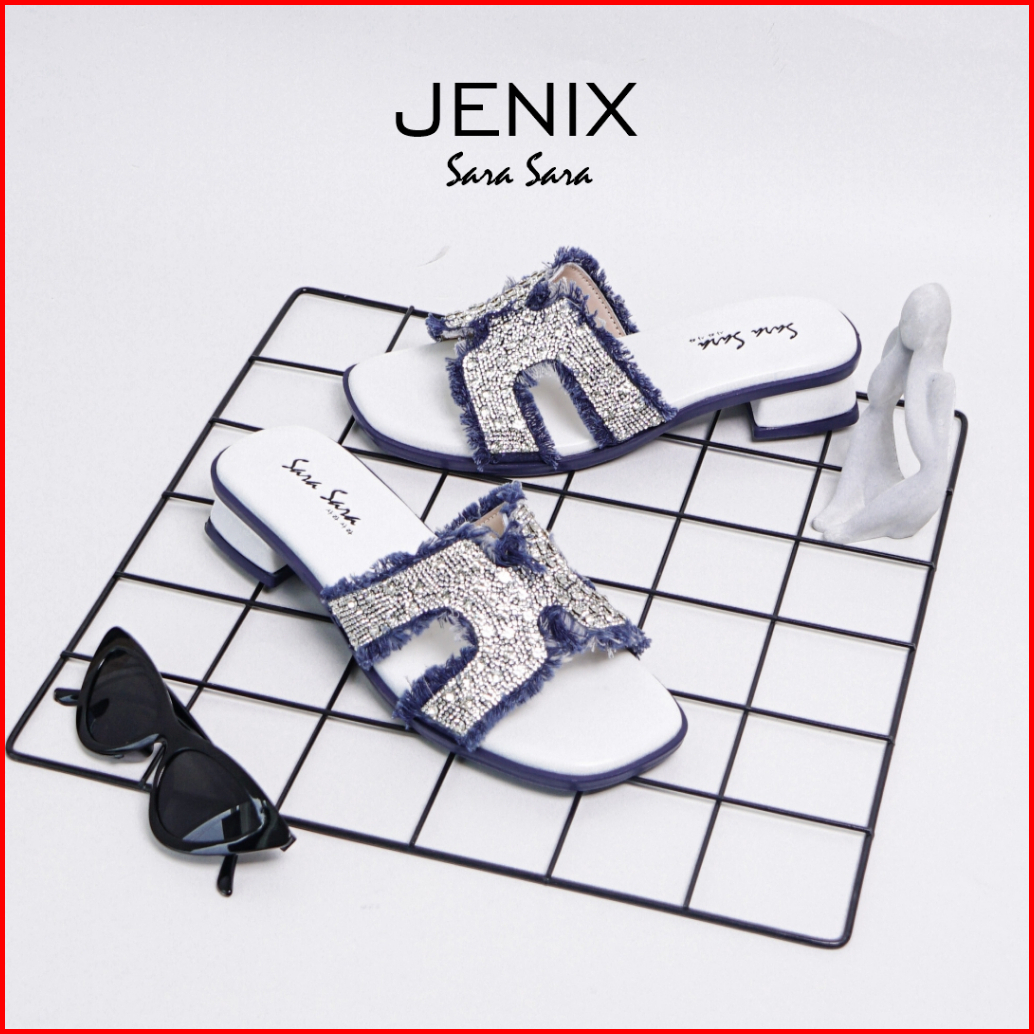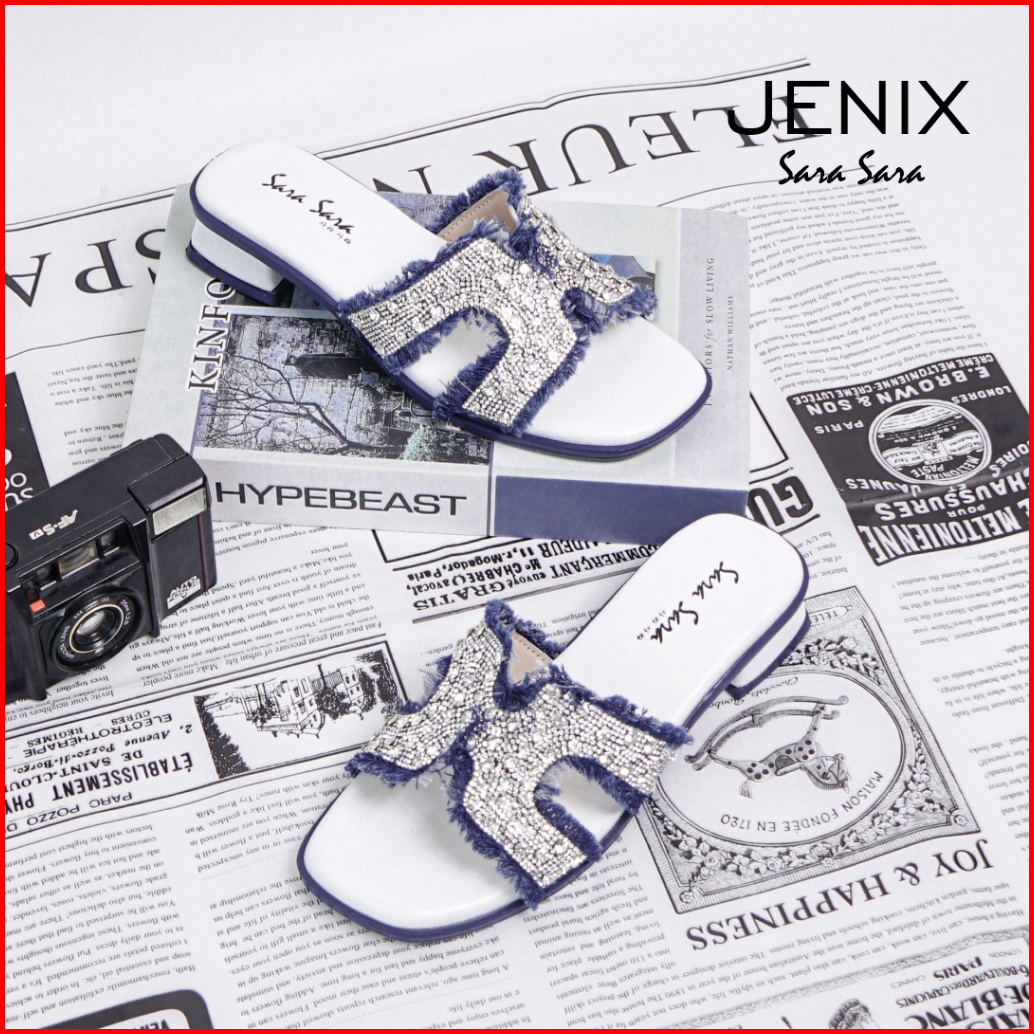 Sara Sara Jenix Sandal Heels Wanita Hak Tahu Bahan Denim