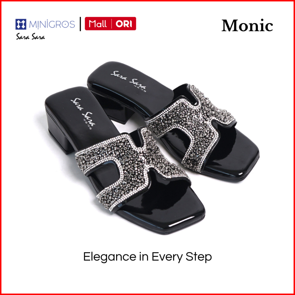 Sara Sara Monic Black Heels Wanita Sandal Hak Chunky