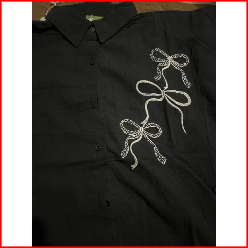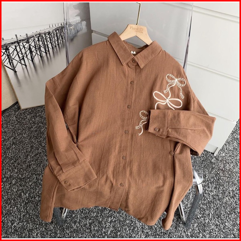 Lora Ribbon Shirt Kemeja Linen Bordir Pita Kemeja Linen Wanita Oversize