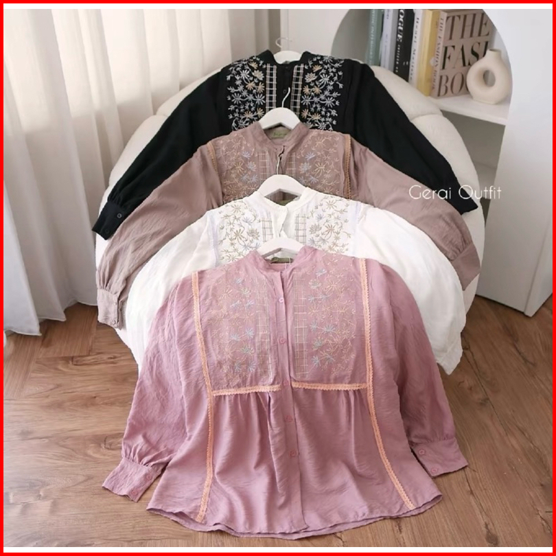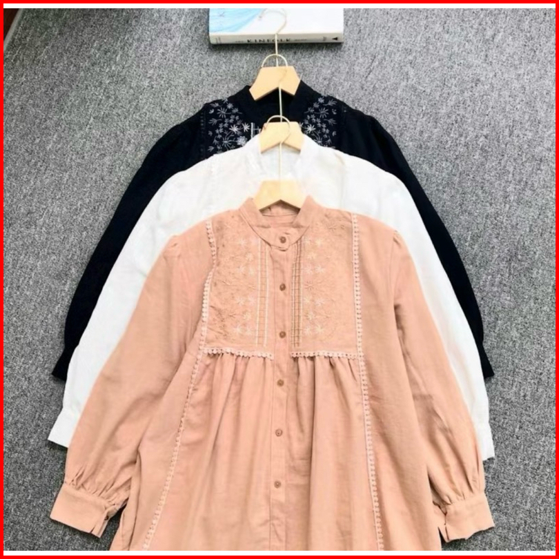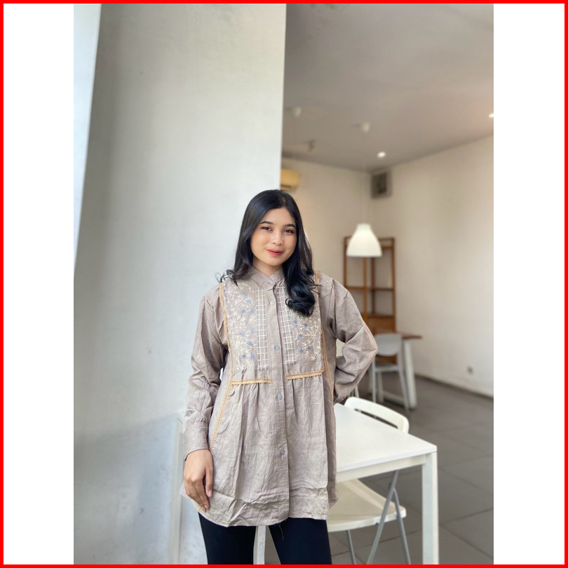 Berlina Blouse Bordir Kemeja Oversize Wanita Pure Linen Premium