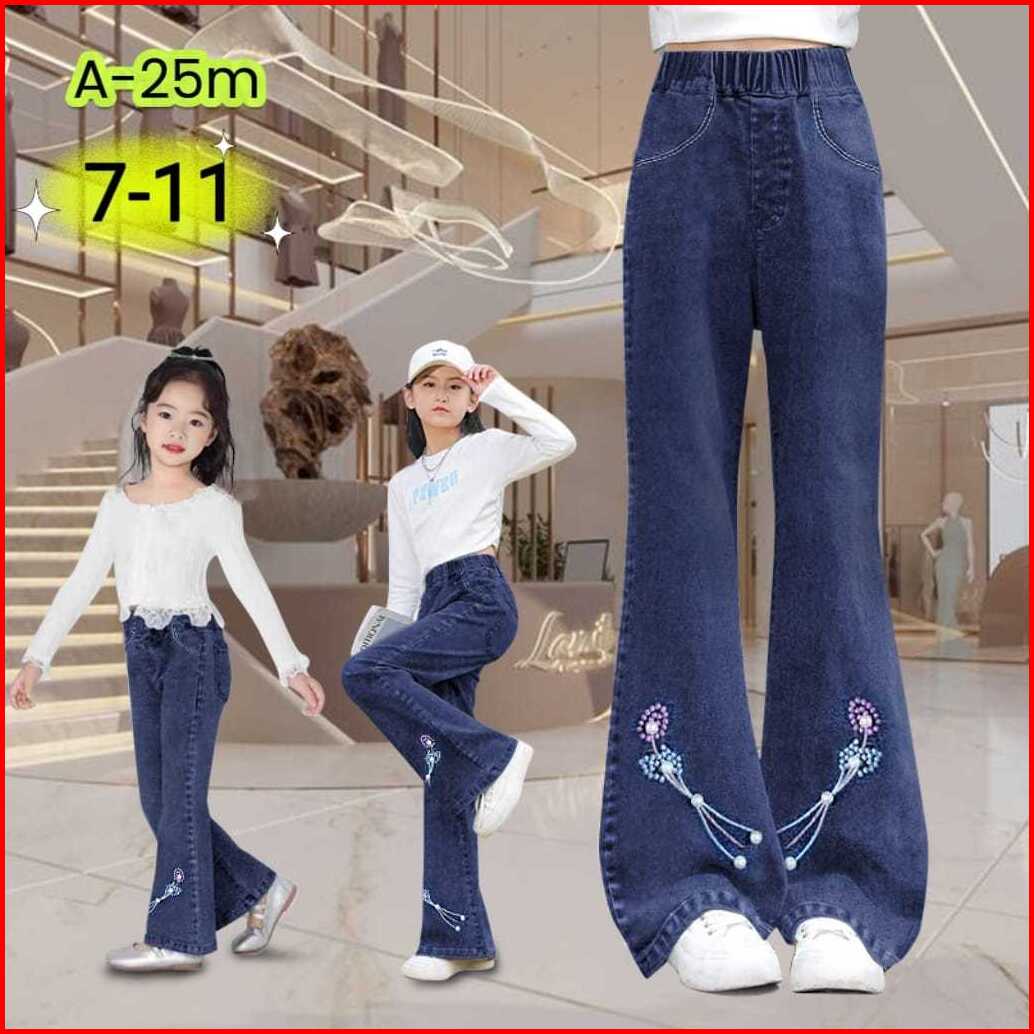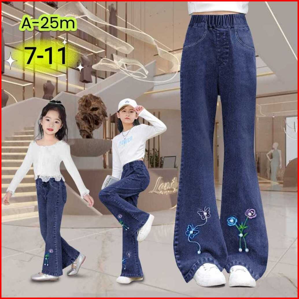 Jeans Cutbray Anak Perempuan Import Motif Bordir Umur 2-11 Tahun Celana Panjang Anak Perempuan Import Model Terbaru