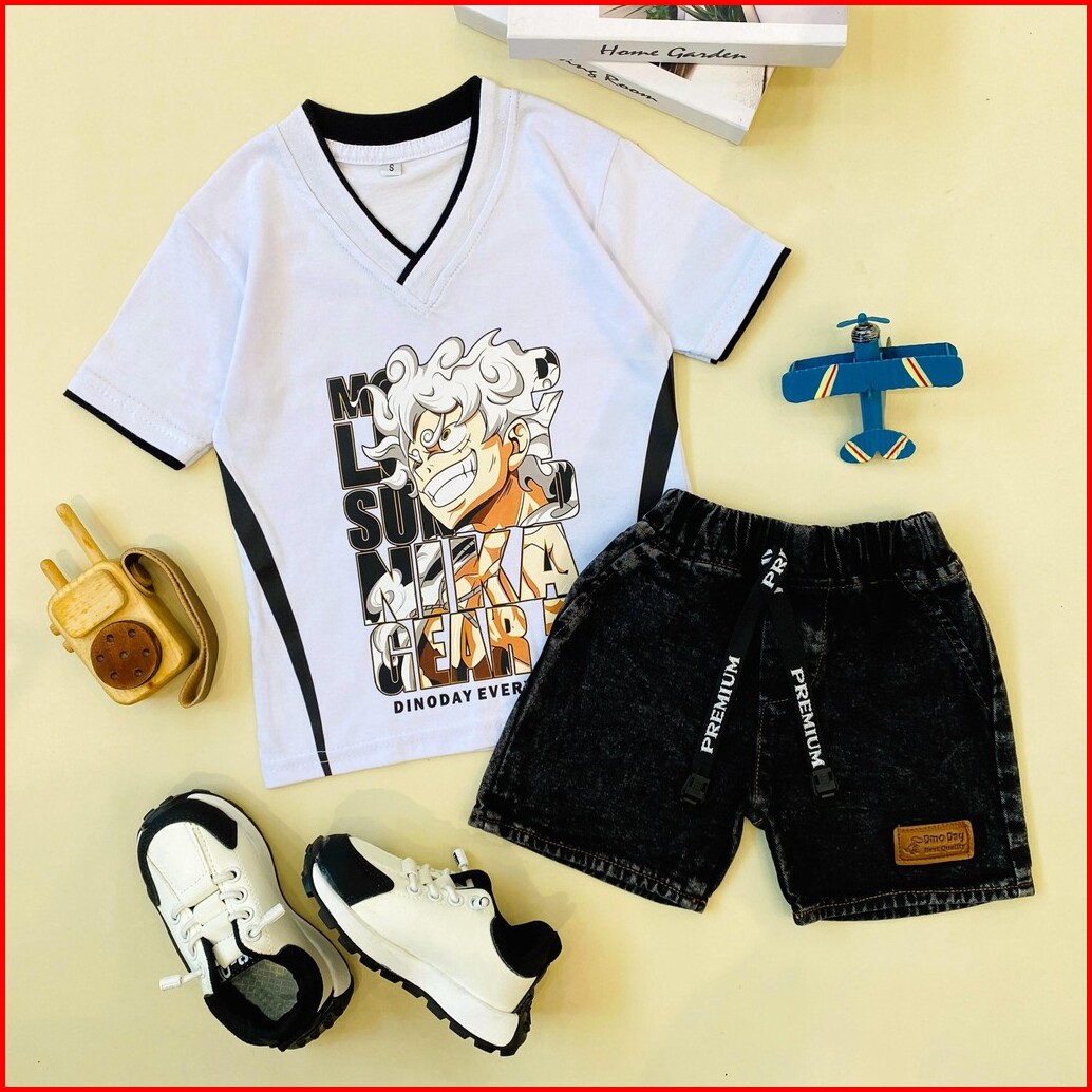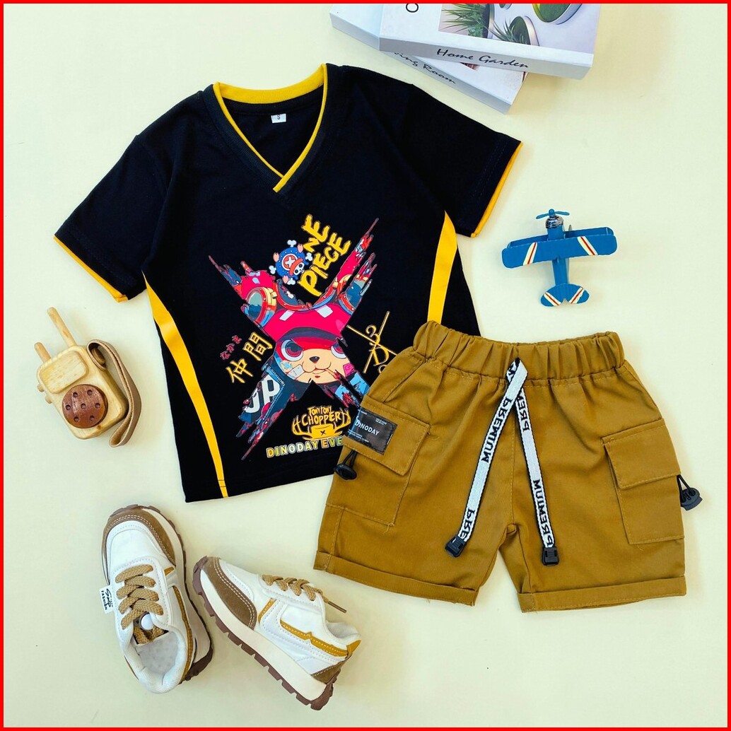 Estishop X Dinoday Setelan Baju Anak Laki Laki Kaos Distro Anime Jepang Celana Cargo Style 1-9 Tahun