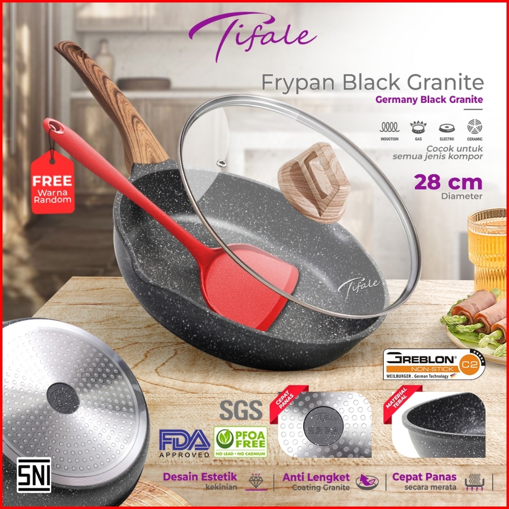 Tifale Frypan 28 Cm Black Granit Fry Pan Peralatan Masak Dapur Anti Lengket