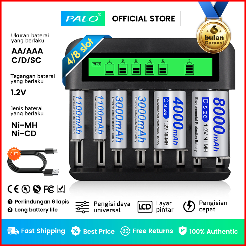 Palo Fast Charger Baterai For Aa Aaa C D 1.2v Ni-mh Ni-cd Baterai Isi Ulang Casan Batre Usb Intelligent Battery Charger