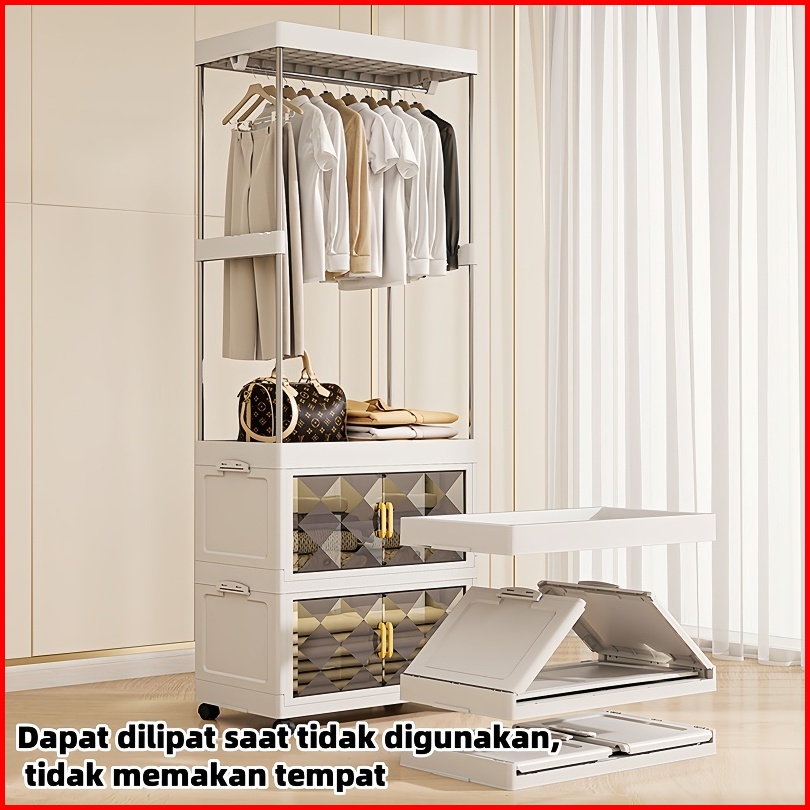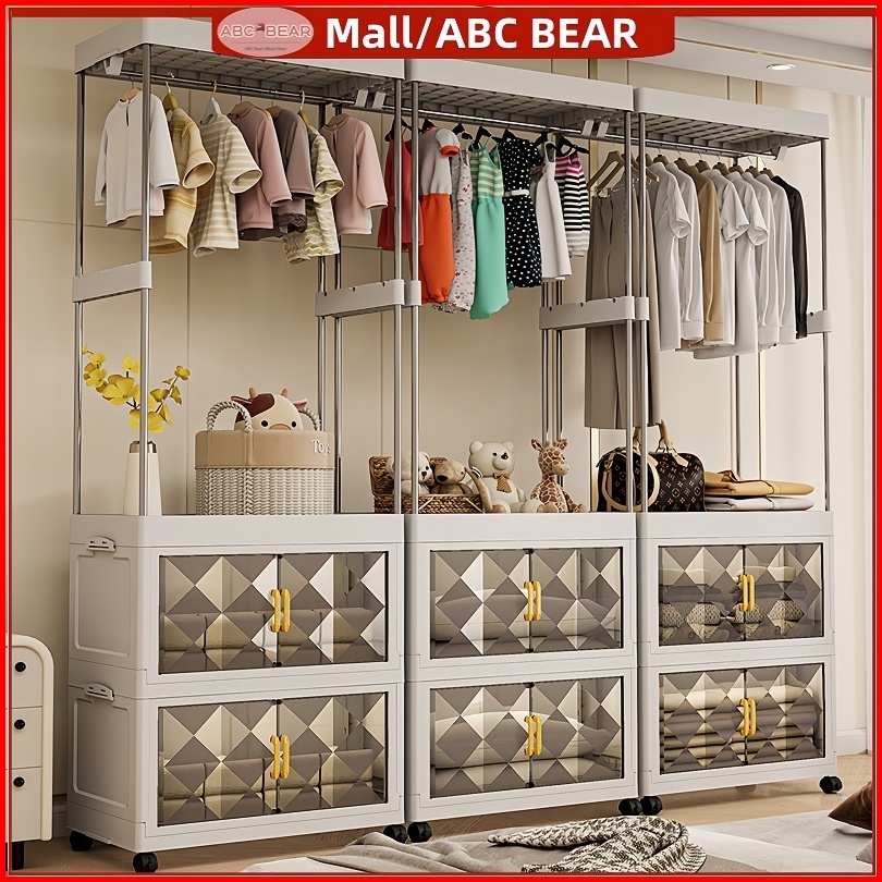 Abc Bear Lemari Plastik Susun Besar Lemari Pakaian Dewasa Bayi Rak Baju Multifungsi Organizer Hemat Ruang Katrol Senyap