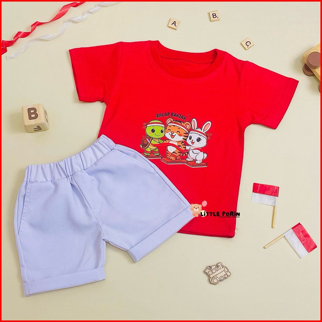 Little Porin - Setelan Kemerdekaan Anak Laki-laki - Oneset Anak - Kaos Anak
