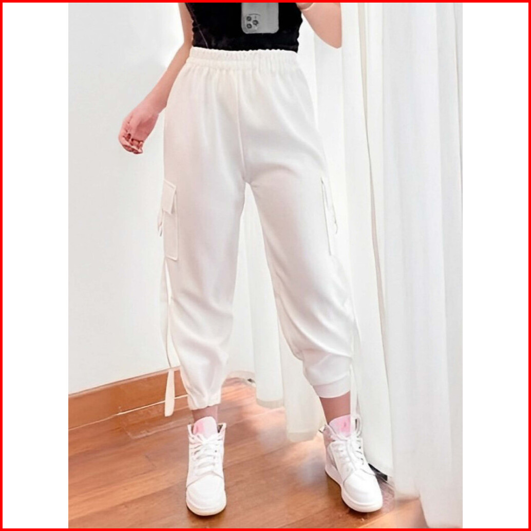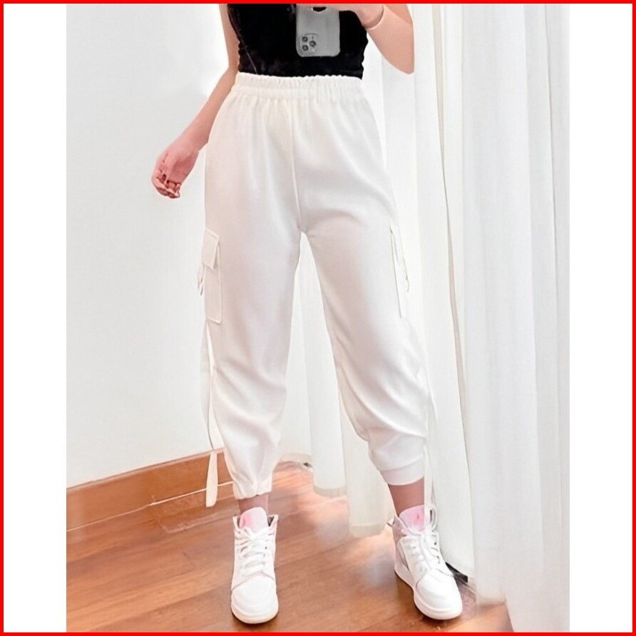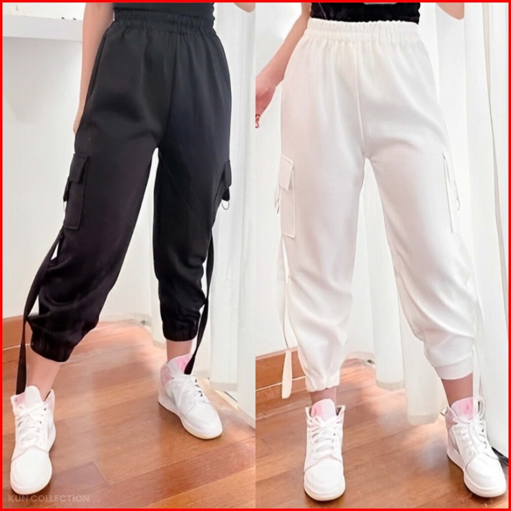 Celana Cargo Wanita Scuba Jogger Pants Hitam Putih Stretch Premium Kun Collection