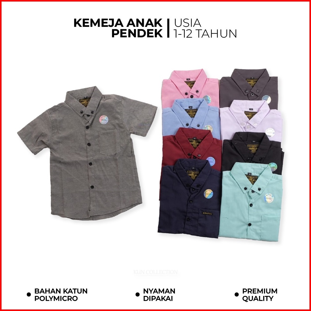 Terlaris Kemeja Pendek Polos Anak Usia 1-10 Tahun