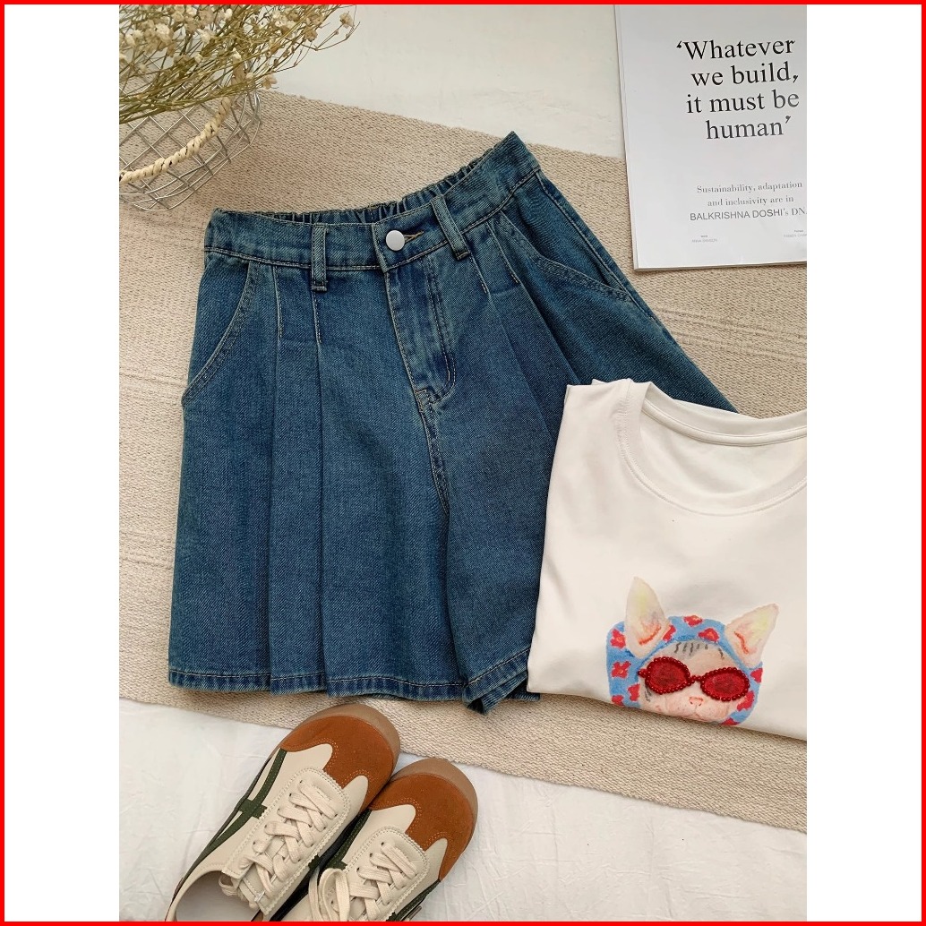 Korean Style Highwaist Celana Jeans Pendek Wanita --jeans Pendek Cewe