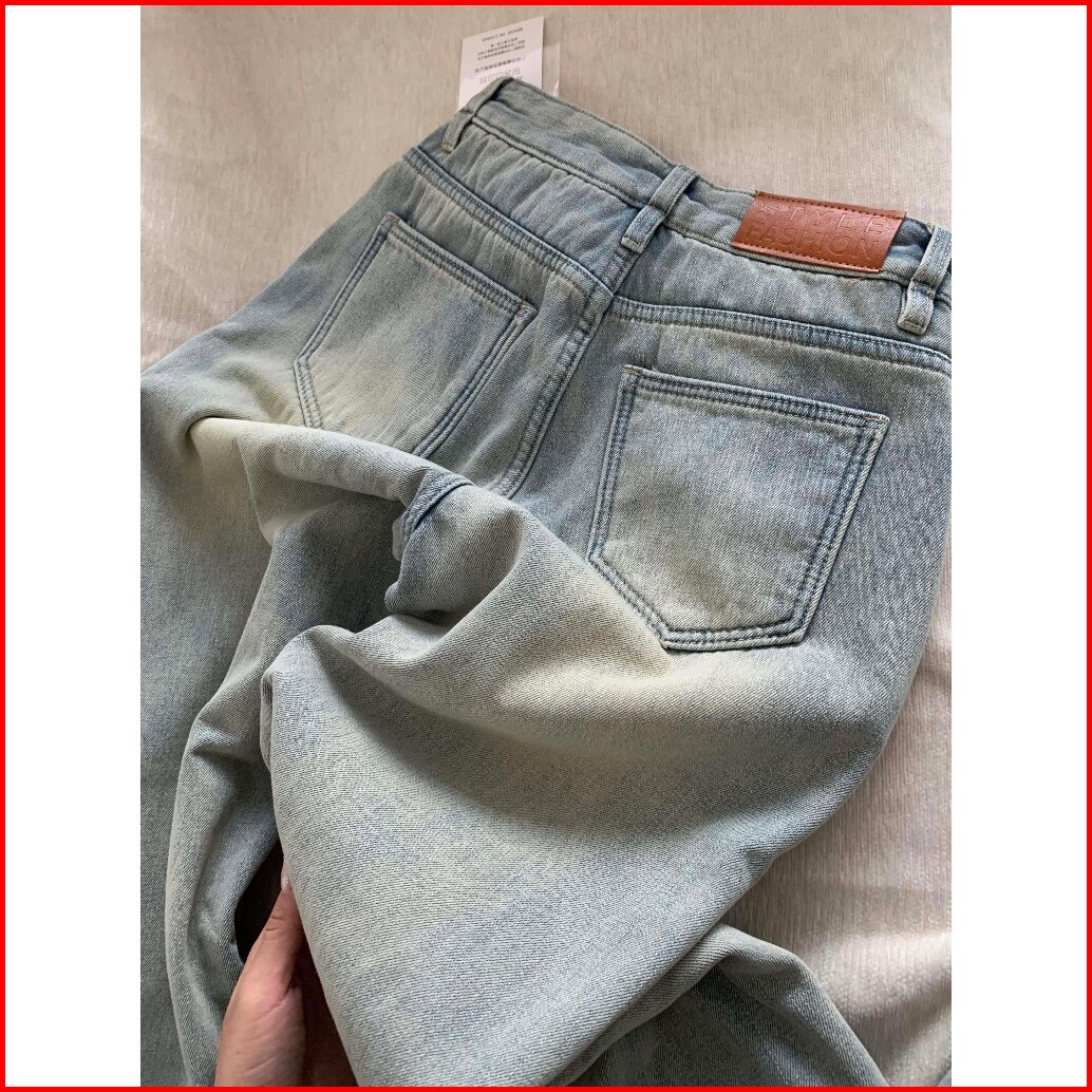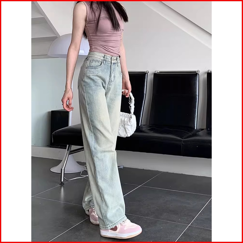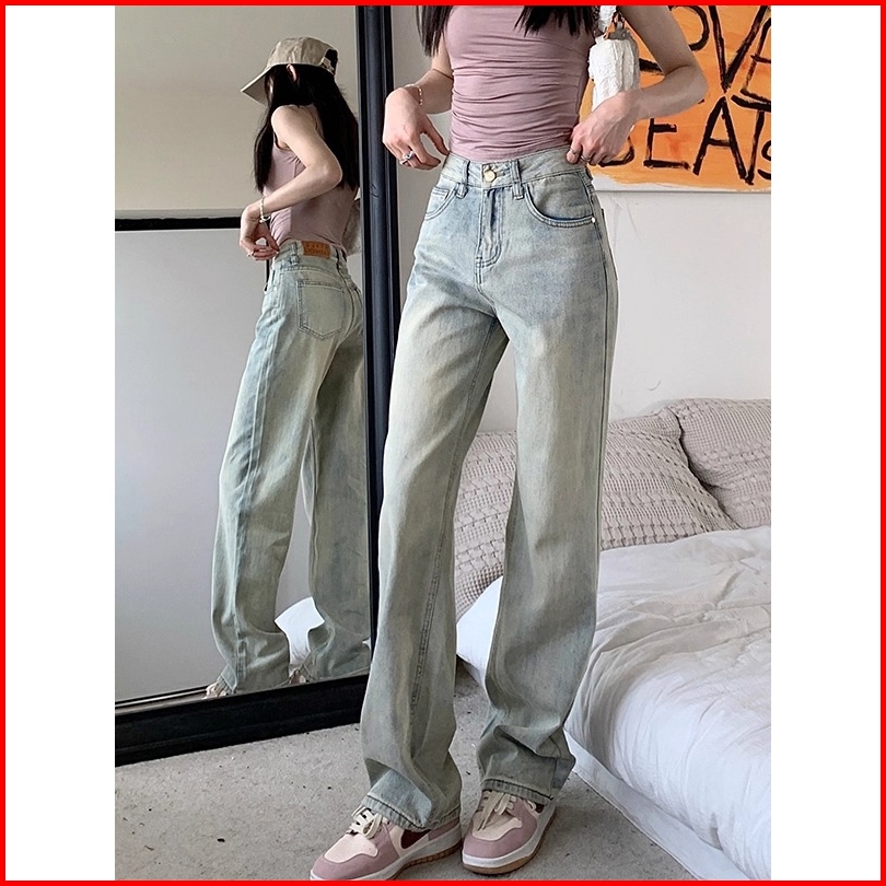 Luck Wanitabiru Nostalgia Amerika Lurus Celana Jeans Wanita Highwaist Denim