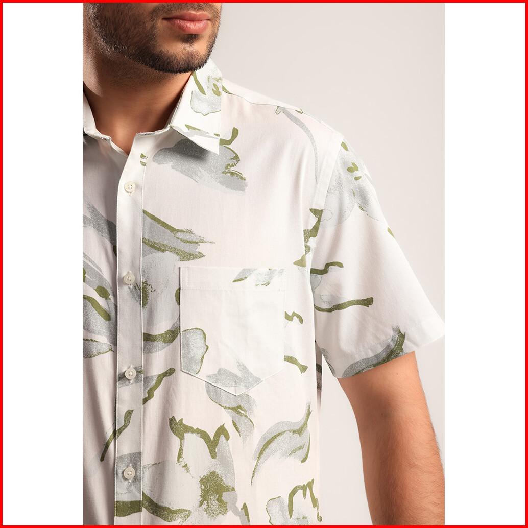 Moc - Kemeja Motif Pria Lengan Pendek Nirved - Olive Light