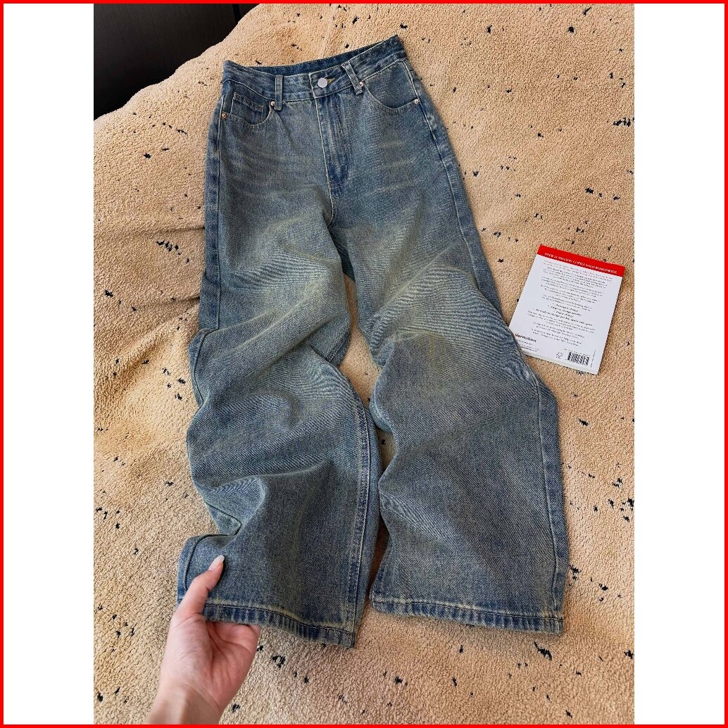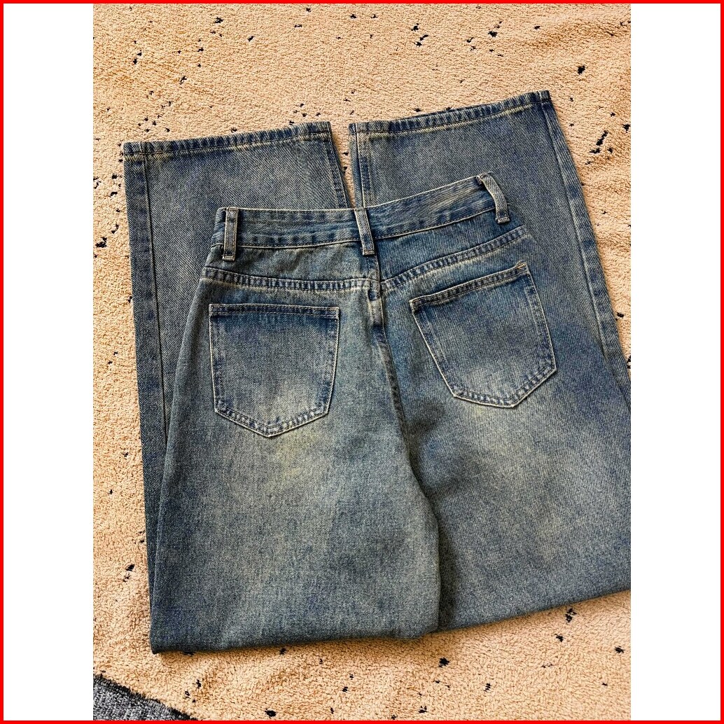 Biru Retro Korea Style Highwaist Loose Celana Jeans Wanita Kekinian