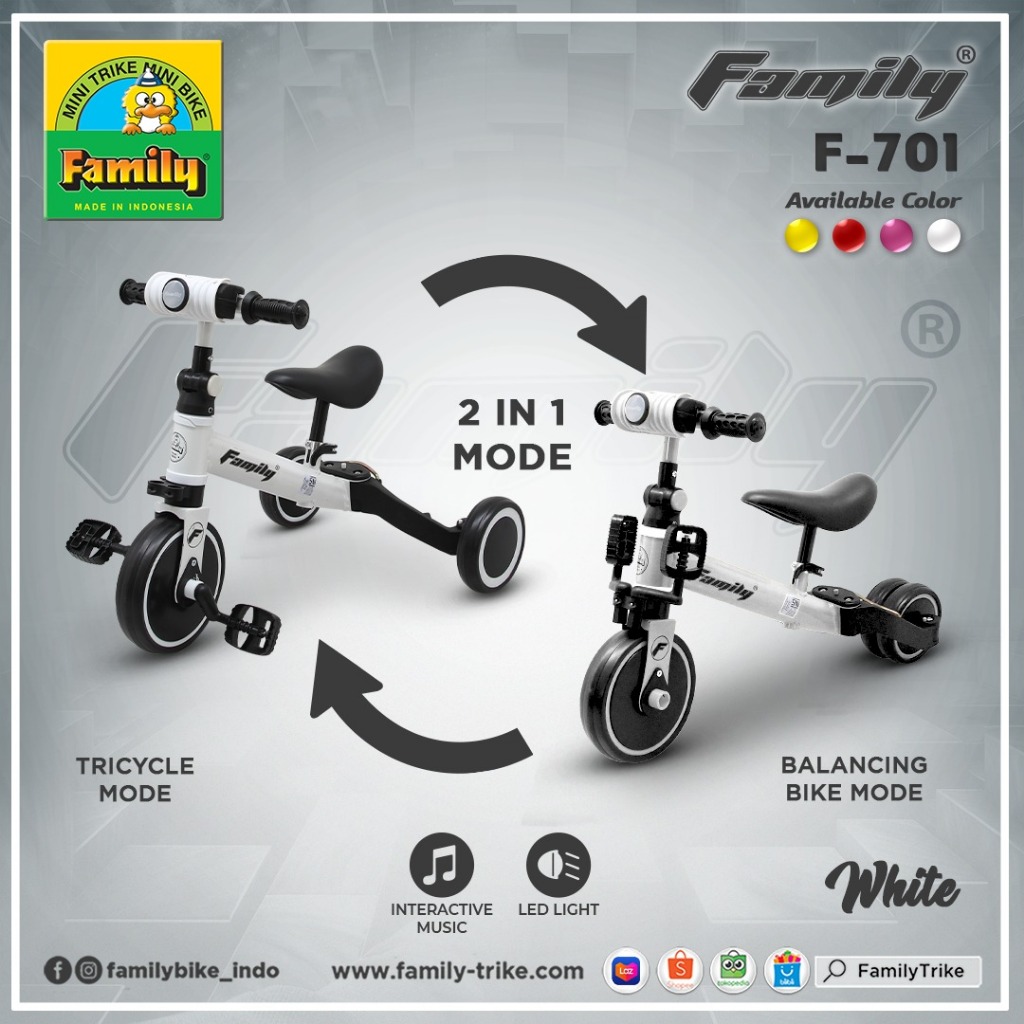 [Star] Family Balance Bike F-701 / Sepeda Anak Roda 3 / Sepeda Keseimbangan Anak Tricycle Stroller Anak 2 in 1 Lampu dan Musik SNI