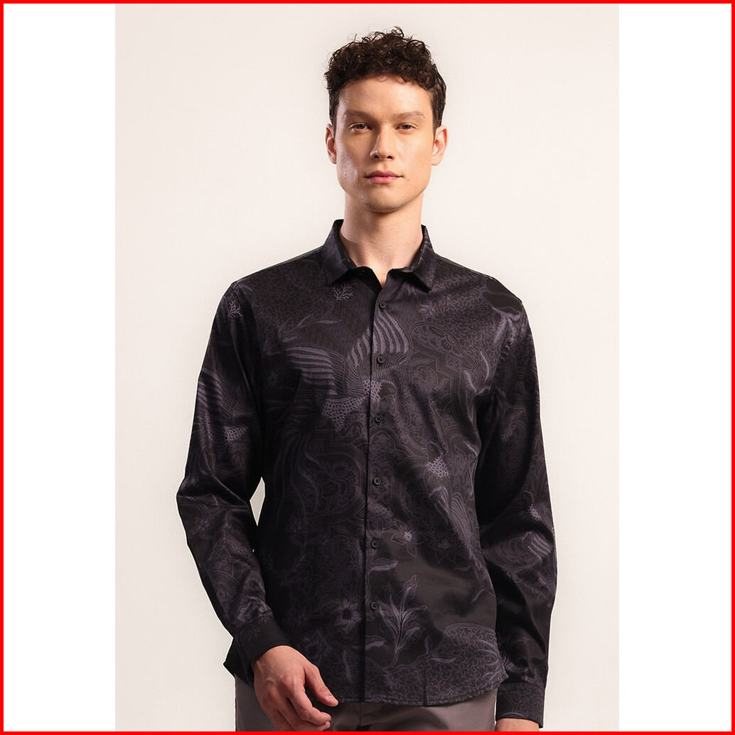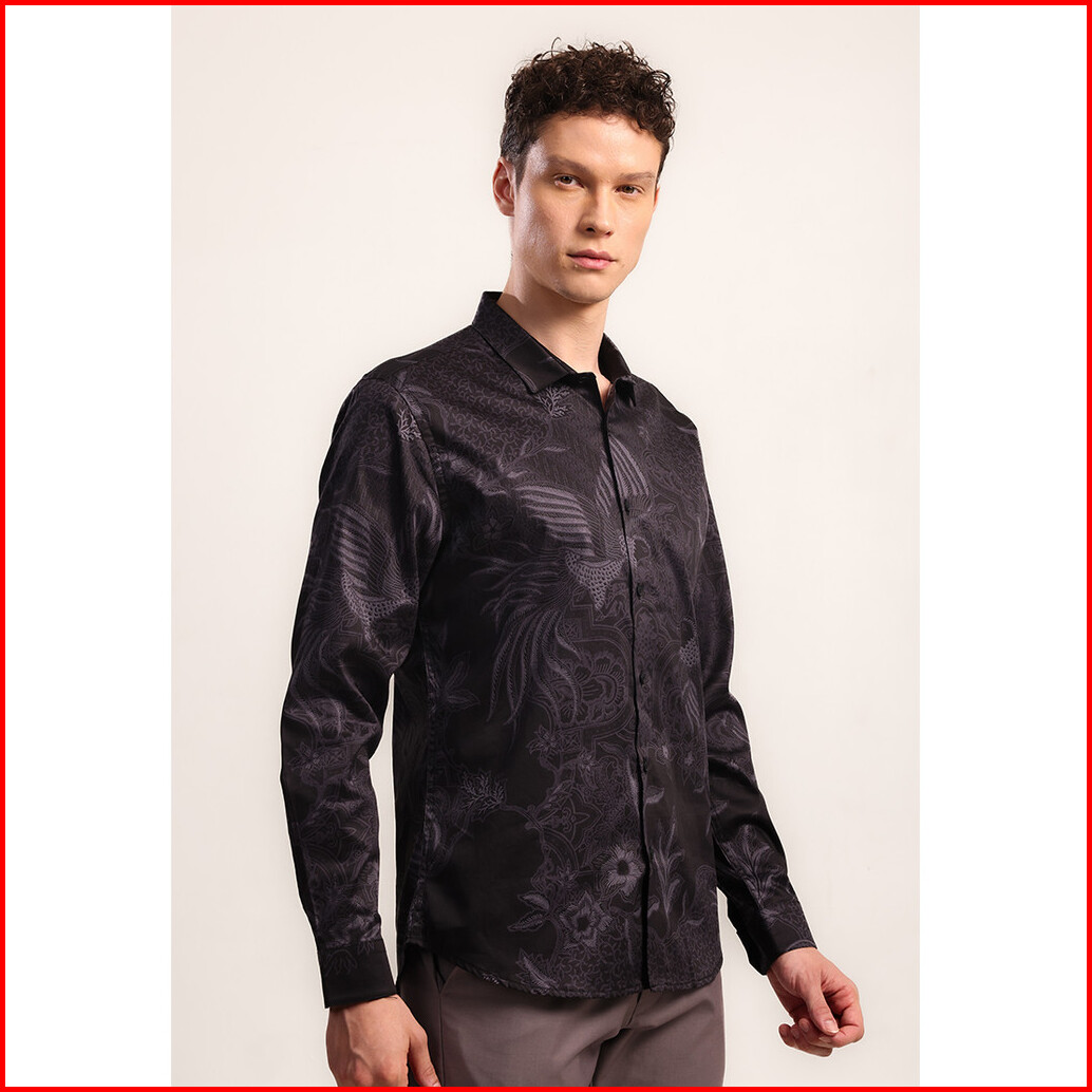 Moc - Kemeja Batik Pria Lengan Panjang Mahendra - Black