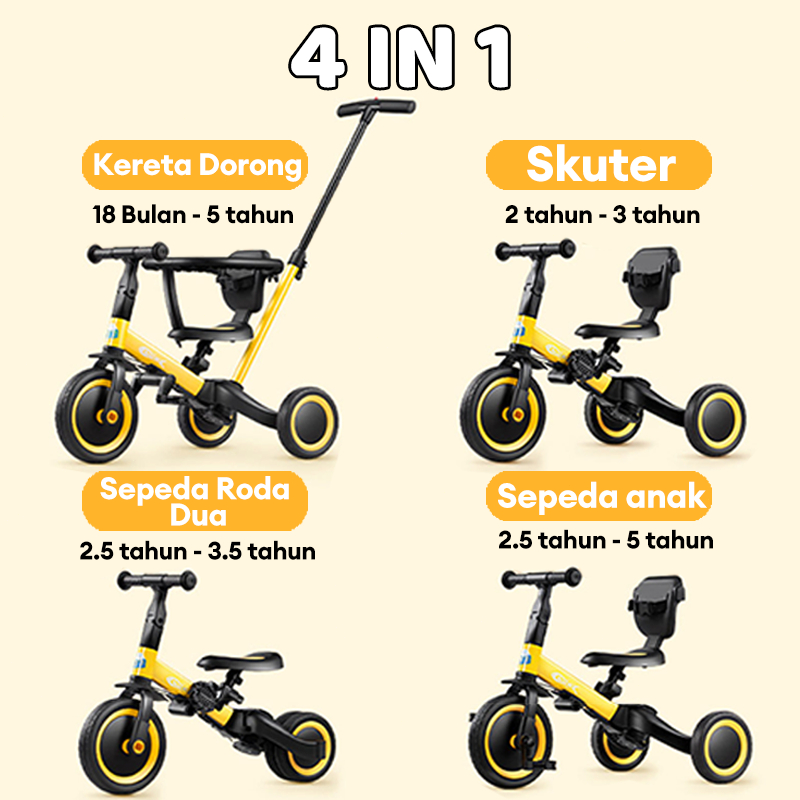 [Star] MAGICAL PLAYTIME Sepeda Anak Roda 3 4in1 Balance Bike & Push Bike Keseimbangan Usia 1-6 Tahun Aman