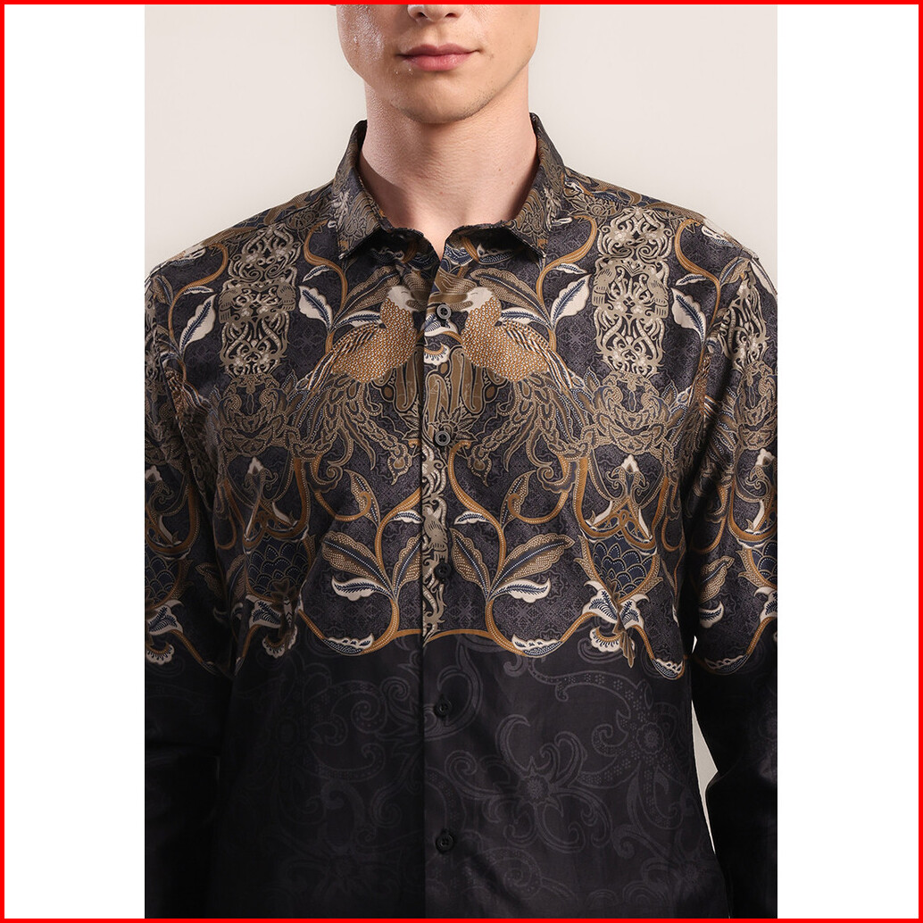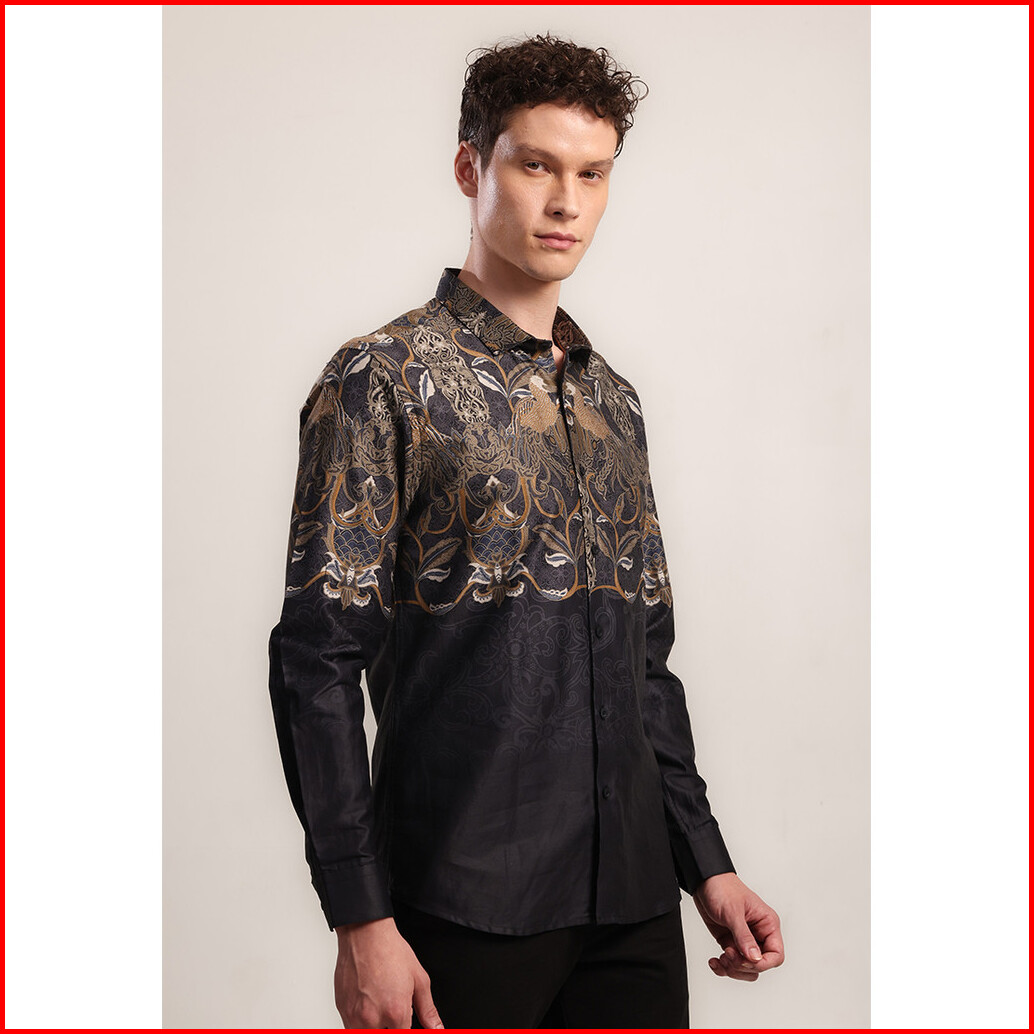 Moc Kemeja Batik Lengan Panjang Pria Madhurash - Black