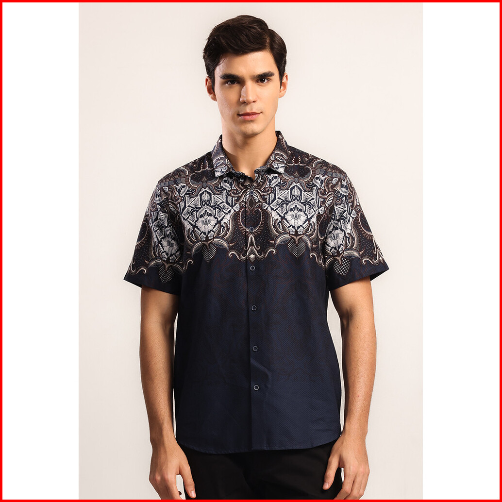 Moc - Kemeja Batik Pria Lengan Pendek Dharma - Navy
