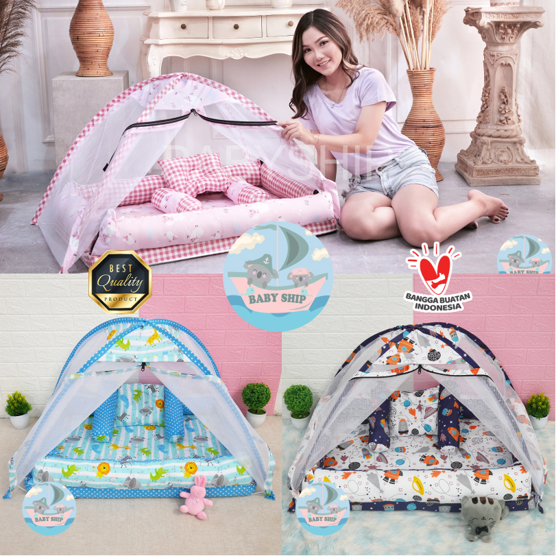 [Star] Kasur Bayi Kelambu Tenda / Tempat Tidur Bayi Set Bantal Guling Free Tas Mika [ Merk babySHip ]