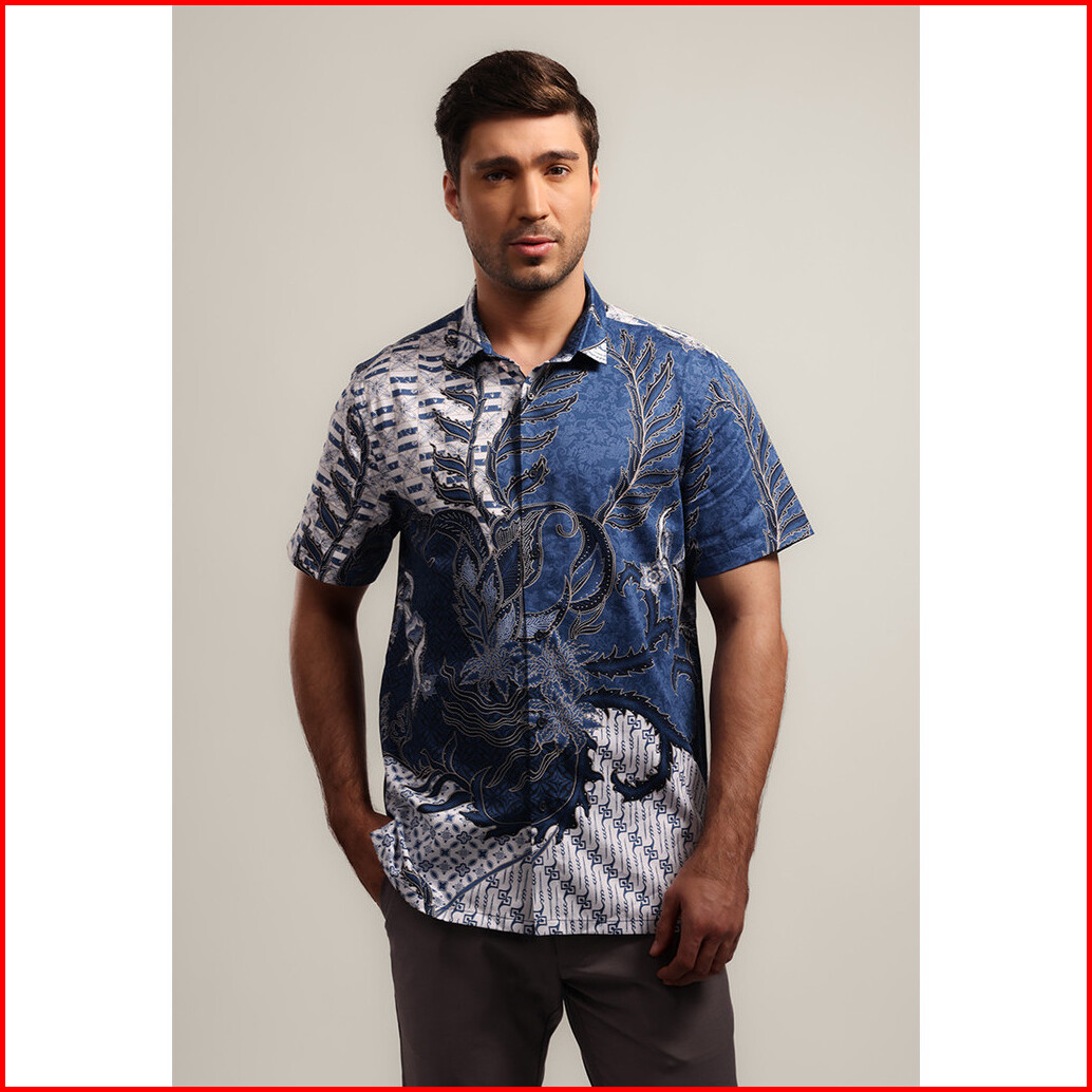 Moc - Kemeja Batik Pria Lengan Pendek Mathura - Blue