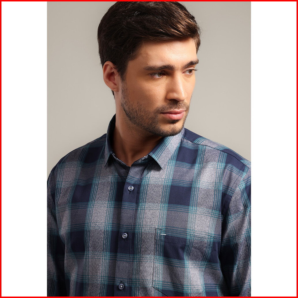 Moc - Kemeja Kotak-kotak Pria Lengan Panjang Keneth - White